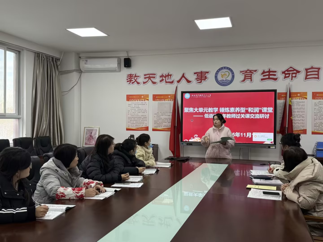 最后低语组全体教师齐聚共研共进,相互交流教学和听课的收获,形成教学合力。