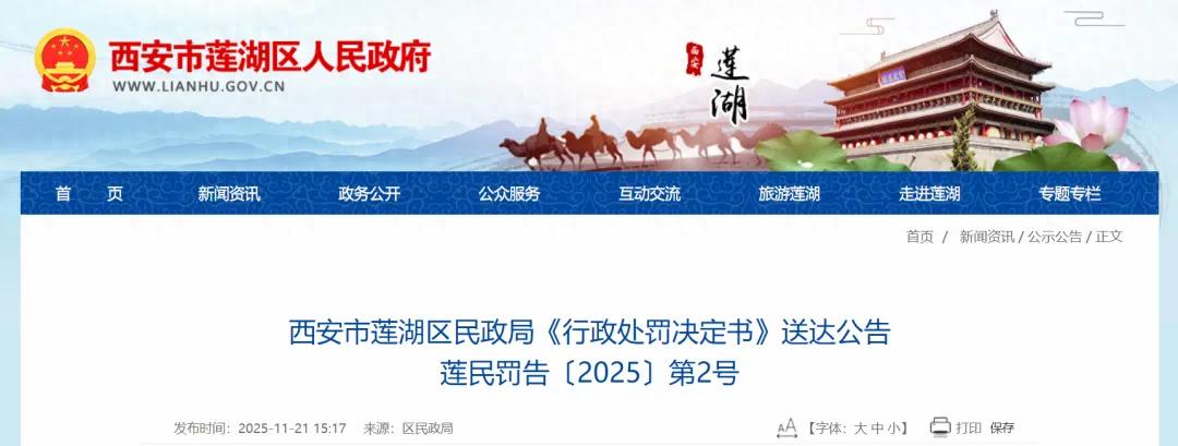 近日,西安市莲湖区民政局发布《行政处罚决定书》送达公告,经查,西安市莲湖区无障碍协会等84家社会组织连续两年(含两年以上)未参加社会组织年度检查工作,莲湖区民政局对这84家社会组织作出撤销登记的行政处罚。