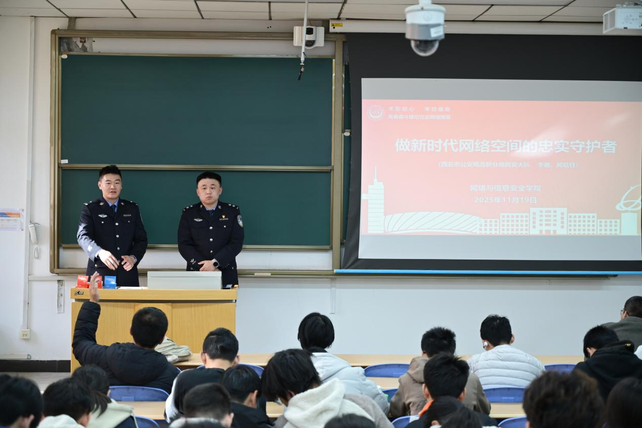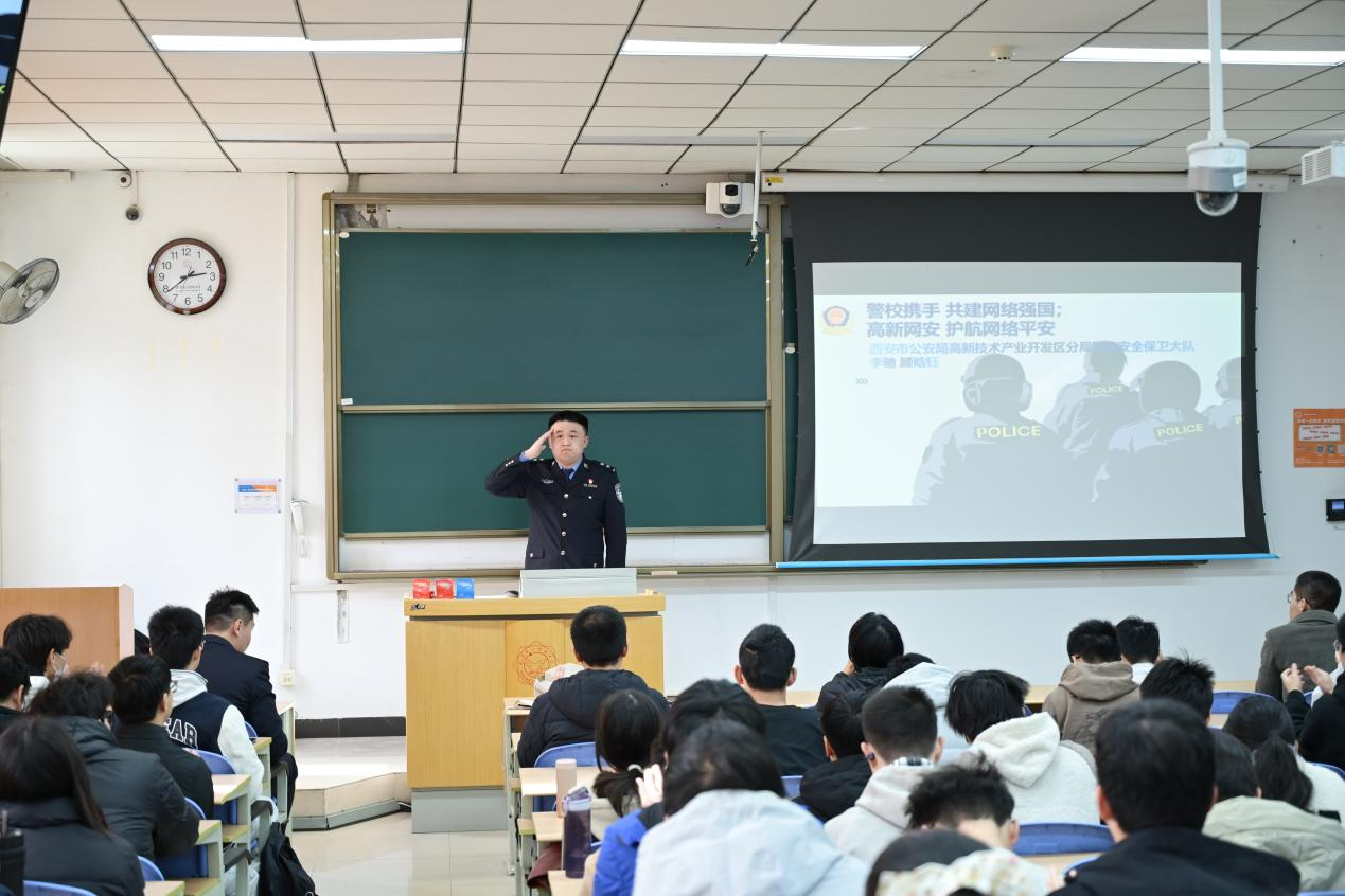 阳光讯(记者 熊玺 文/图 通讯员 马东)近日,西安市公安局高新分局网安大队联合西安电子科技大学网络与信息安全学院,开展“做新时代网络空间的忠实守护者”主题宣讲活动。网安大队以一线实战案例为教材,为100余名青年学子带来一场兼具专业性与警示性的网络安全普法课。