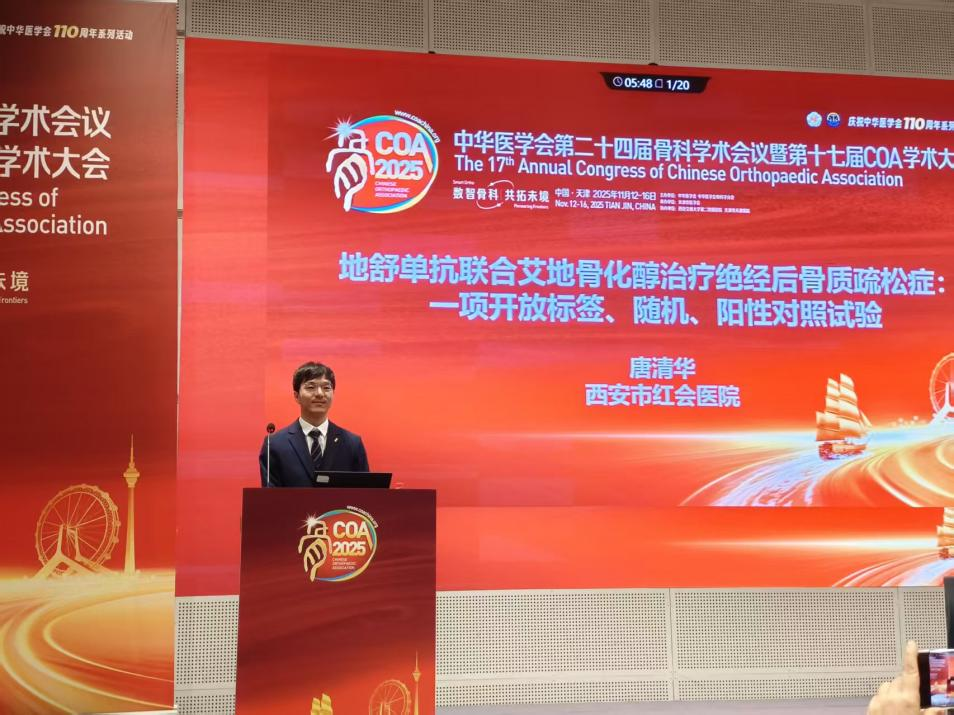 唐清华医生的专题演讲“易误诊为骨质疏松症的代谢性骨病”,从临床鉴别诊断角度入手,深入分析了易与骨质疏松混淆的代谢性骨病特点。现场讨论激烈,此外,唐清华还作了一项论文发言,题为“地舒单抗联合艾地骨化醇治疗绝经后骨质疏松症:一项开放标签、随机、阳性对照试验”。该研究通过严谨的设计和细致的数据分析,探讨了联合用药的疗效与安全性,为绝经后骨质疏松的治疗提供了新思路。