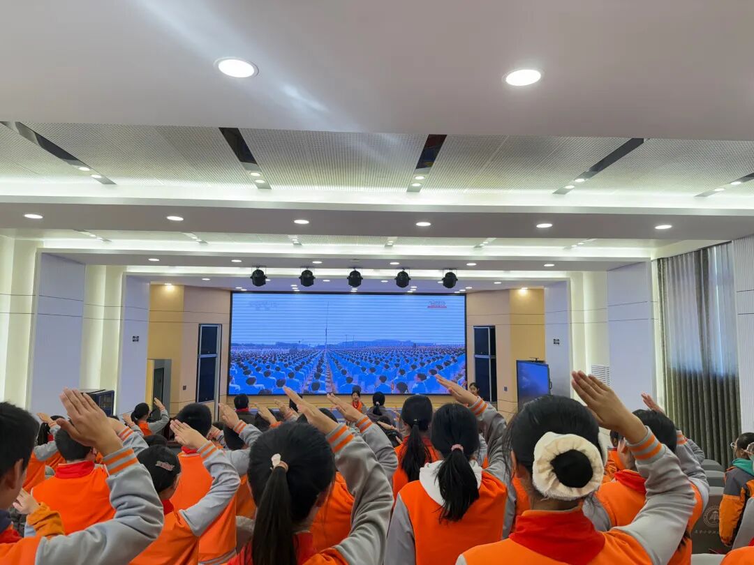 大会在庄严的国歌声中启幕,全体人员肃立致敬,五星红旗冉冉升起,赤诚的爱国之心在每一位在场者心中激荡。随后,出队旗、唱队歌环节依次进行,鲜艳的队旗迎风飘扬,嘹亮的队歌铿锵有力、响彻校园,队员们精神抖擞、身姿挺拔,尽显新时代少先队员的昂扬朝气与蓬勃风采。