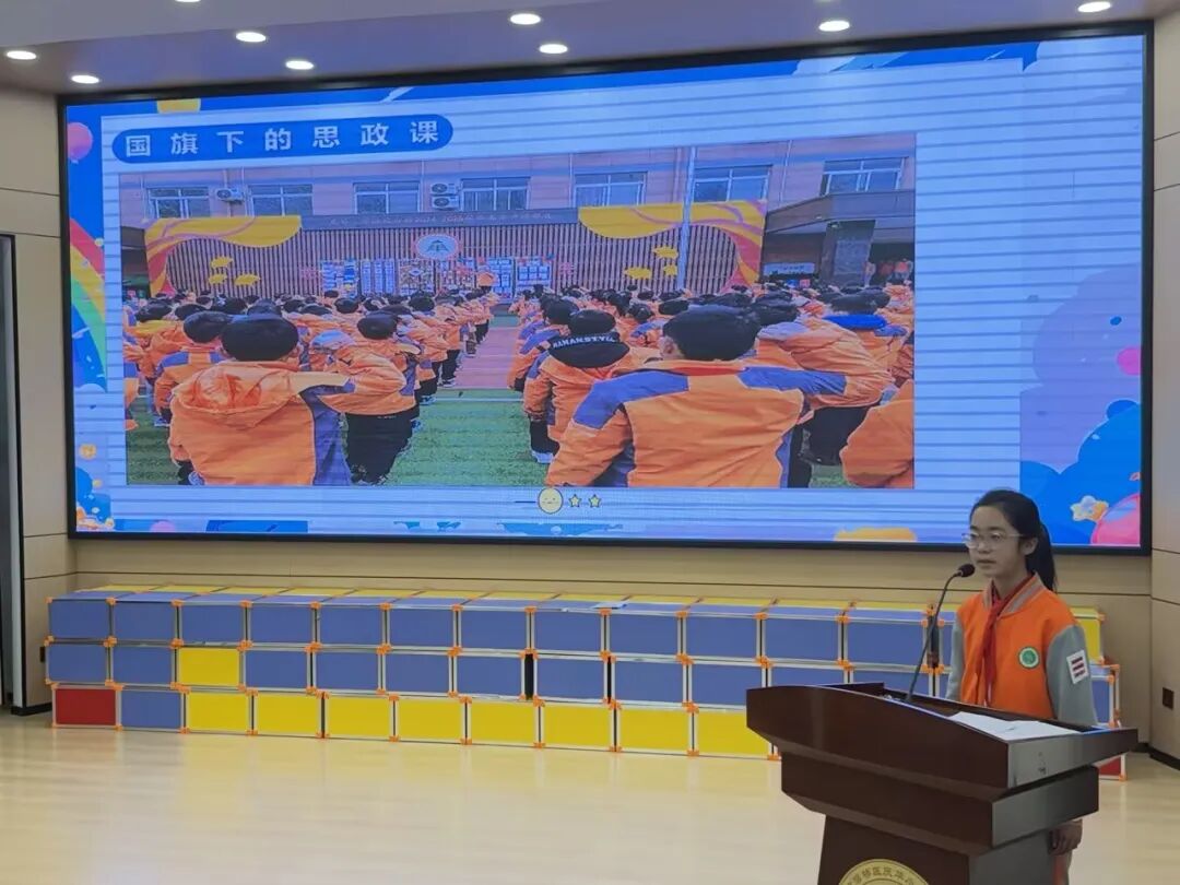 大会在庄严的国歌声中启幕,全体人员肃立致敬,五星红旗冉冉升起,赤诚的爱国之心在每一位在场者心中激荡。随后,出队旗、唱队歌环节依次进行,鲜艳的队旗迎风飘扬,嘹亮的队歌铿锵有力、响彻校园,队员们精神抖擞、身姿挺拔,尽显新时代少先队员的昂扬朝气与蓬勃风采。