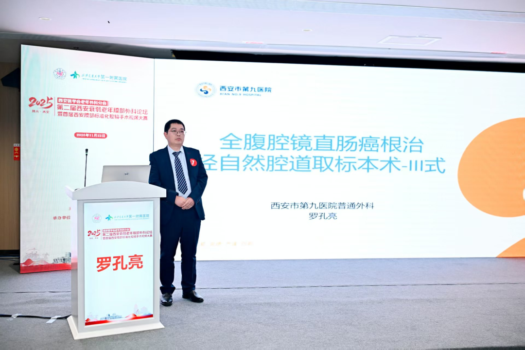 阳光讯(记者 郑亚雷)11月22日,由西安医学会主办、西安交通大学第一附属医院承办的“第二届西安衰弱老年腹部外科论坛暨首届西安腹部标准化腔镜手术视频大赛”在西安成功举办。在本次大赛的激烈角逐中,西安市第九医院普通外科罗孔亮医生凭借其精湛技艺,其参赛作品《全腹腔镜直肠癌根治经自然腔道取标本术-III式》在众多优秀作品中脱颖而出,荣获大赛二等奖。