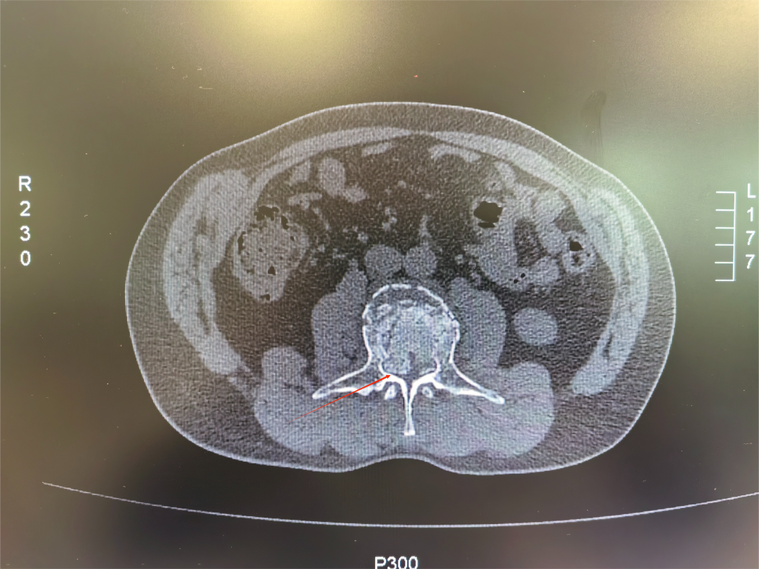该患者为一名52岁中年男性,在工作时不慎从高处坠入3米深坑中,重伤腰部,被紧急送至西安市中心医院经开院区急诊科。急诊科请骨科张强医师紧急会诊,张强医师对患者进行详细查体后,第一时间要求完善患者相关腰椎X线、腰椎CT三维重建及腰椎MRI等检查,及时向刘邦定主任进行汇报,入院时,患者双下肢已完全不能活动,感觉减弱,情况万分危急。经过紧急CT及核磁共振检查,被确诊为“腰3椎体爆裂性骨折伴不全瘫痪”,碎裂的骨块如同“炸弹的弹片”一样,严重侵入椎管,压迫了支配下肢感觉和运动的脊髓神经。这正是导致患者瘫痪的直接原因。