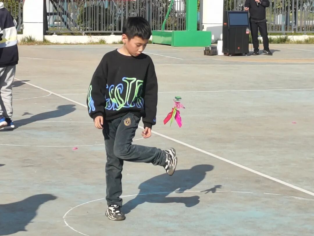 个人项目2分钟踢毽子中,何晟轩同学表现尤为突出,他凭借扎实的功底与灵活的技巧,分别斩获内外踢第五名、单踢第六名的双项荣誉。比赛时,他神情专注,彩色的毽子在脚尖灵活跳跃。尚子秦同学与贾雨萱同学实力相当,在内外踢项目中分获男、女组第六名,她们动作娴熟、节奏稳定,充分展现了日常训练的成果。