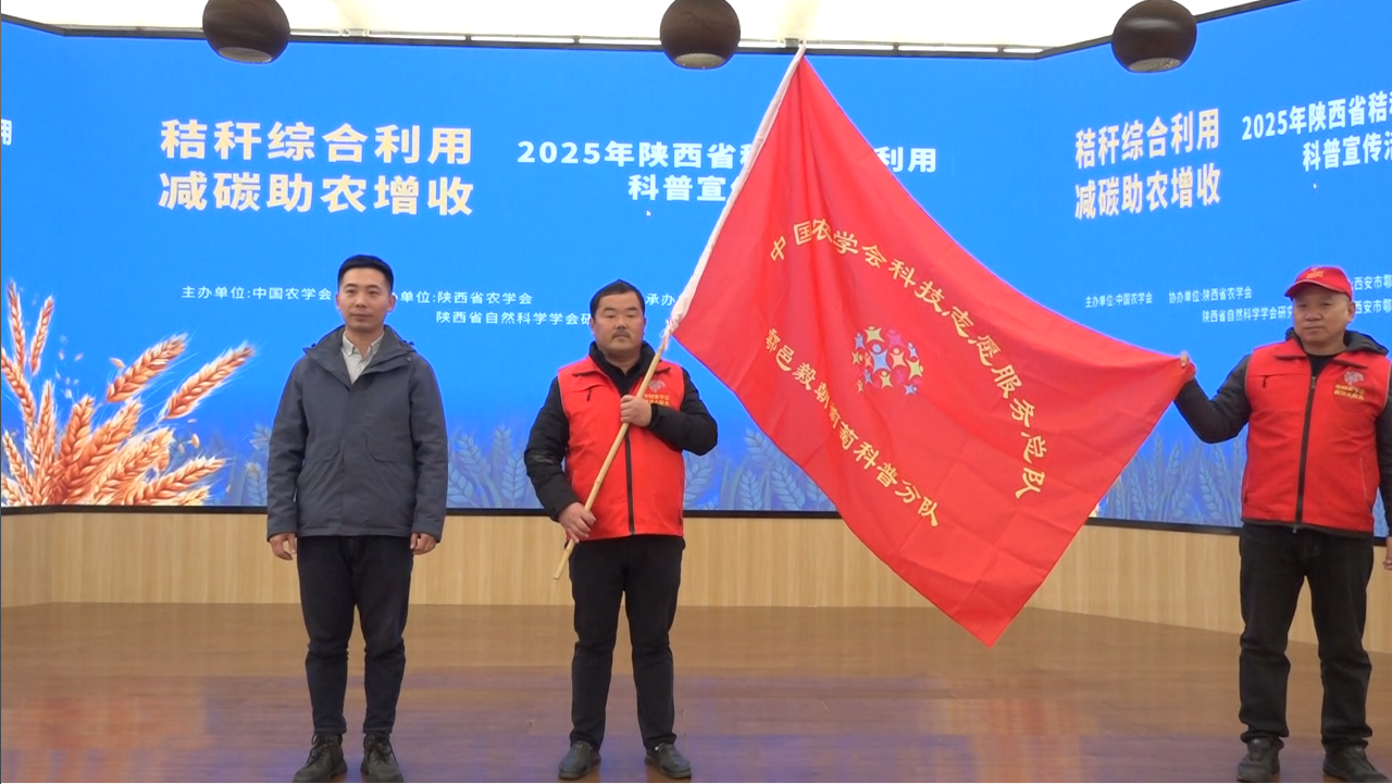 活动现场,中国农学会科技志愿服务总队为陕西省新组建的6支科技志愿服务分队授旗,涵盖农产品质量安全、农机推广、葡萄产业、粮食生产等多个领域。随后,主办方向合作社、家庭农场及农业企业代表赠送了《秸秆综合利用》《转基因那些事儿》《农业有机废弃物资源化利用》等科普书籍、宣传资料和挂图,切实将实用技术送到农民手中,助力农业技术落地生根。