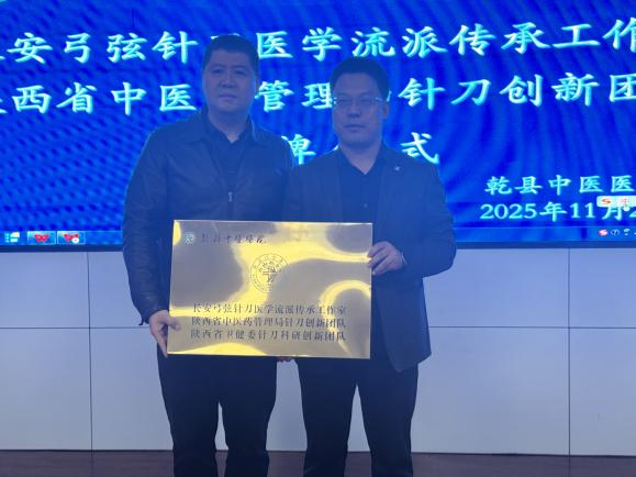 在全体与会人员的共同见证下,乾县中医医院院长、党总支书记何海峰与西安市红会医院董博主任共同为“长安弓弦针刀医学流派传承工作室”“陕西省中医药管理局针刀创新团队”“陕西省卫健委针刀科研创新团队”揭牌,标志着两院将在学科建设、技术推广、科研协作等领域开展深度合作,通过资源共享、优势互补,切实为群众破解“看病难”问题,为中医药针刀医学的传承创新与高质量发展注入新动能。