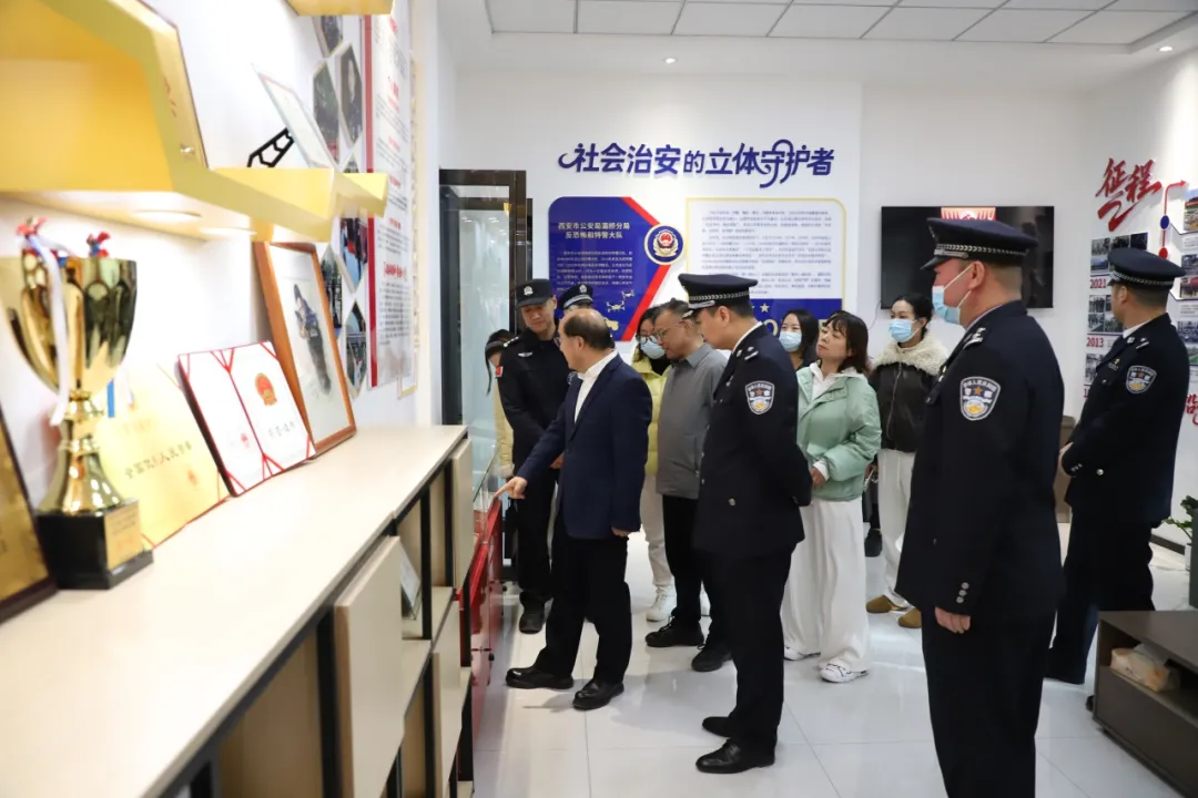 下午2时,活动准时开始。在引导员的带领下,参观人员首先步入了警营荣誉室。陈列柜中一座座奖章、一面面锦旗和一张张珍贵的照片,无声地讲述着灞桥公安的忠诚担当。