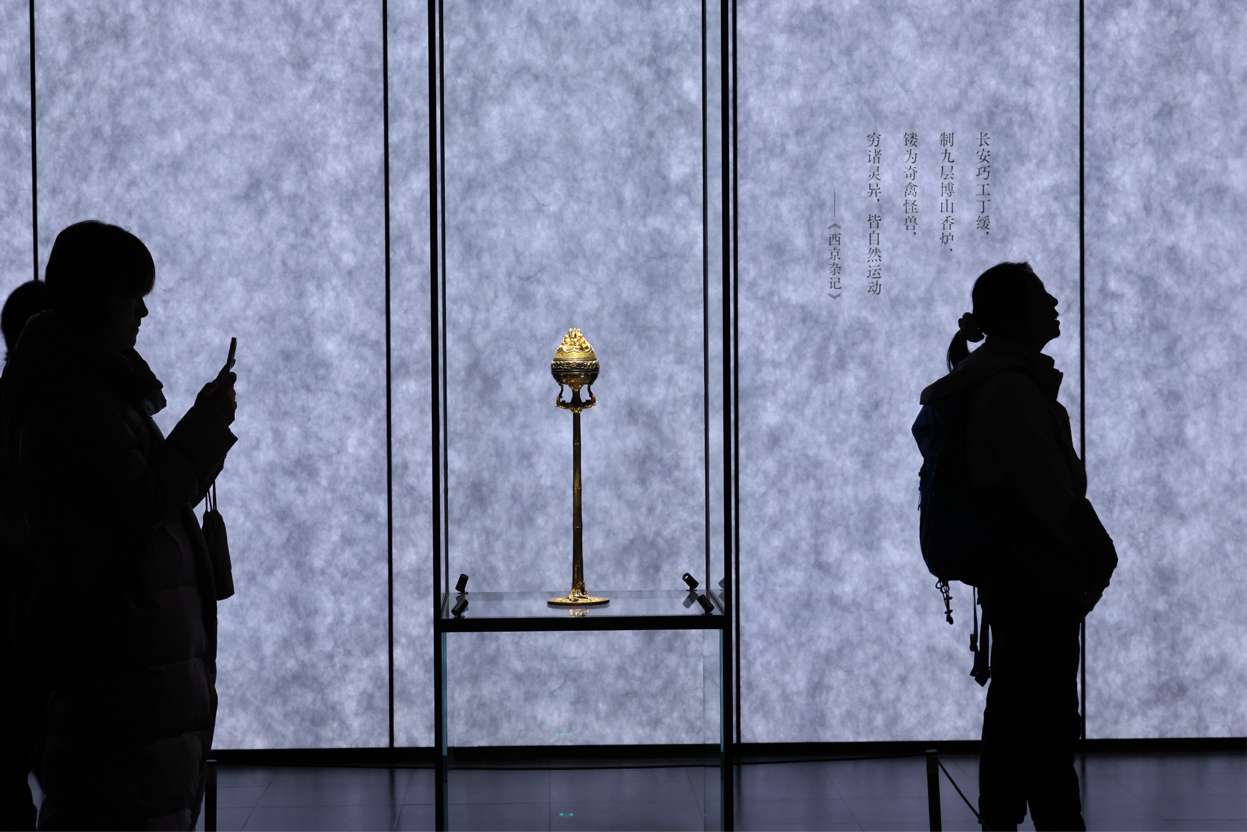 1500余件(组)珍贵文物静静陈列,从见证军事制度的杜虎符、象征皇权的皇后玉玺,到展现丝路繁华的鎏金铜蚕、工艺精湛的鎏金银竹节熏炉,每一件文物都在诉说着秦汉时期政治、经济、文化、艺术的蓬勃发展故事。