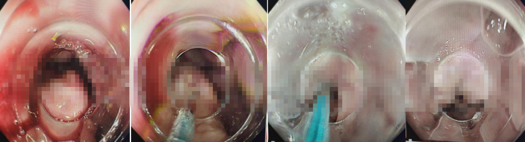 张欣主任医师凭借精湛技艺精准操作,先以注射针扎入食管曲张血管,再采用“三明治夹心法”推注硬化剂+组织胶+硬化剂。这一技术既能避免组织胶堵塞内镜管道,又能确保充分填充曲张静脉。随着组织胶的注入,原本肆意喷涌的出血点逐渐被黏稠的胶体封堵,出血速度明显减缓,直至最终停止,一场激烈的“生死较量”在医生的妙手下逐渐平息,为患者争得了生的希望。