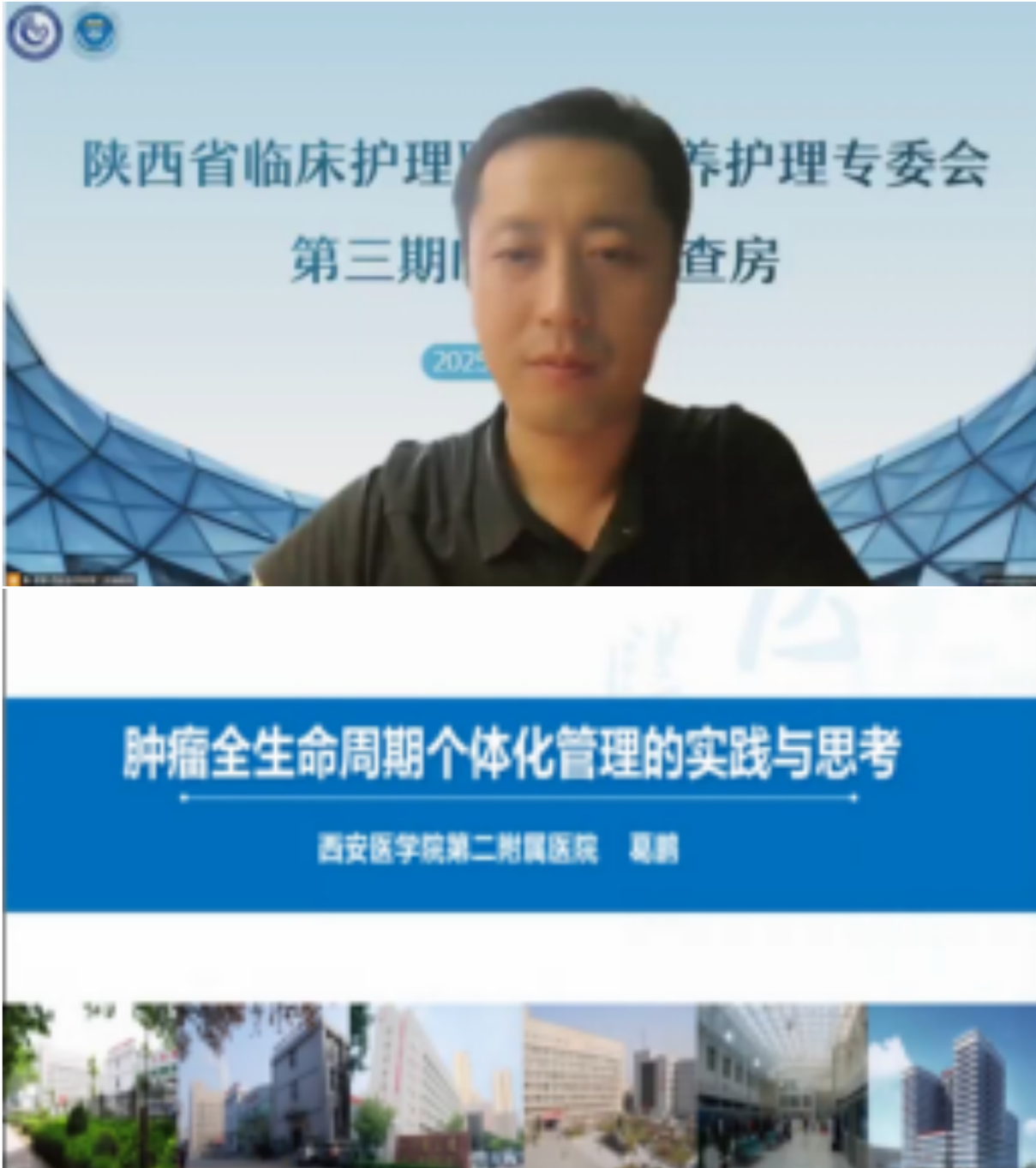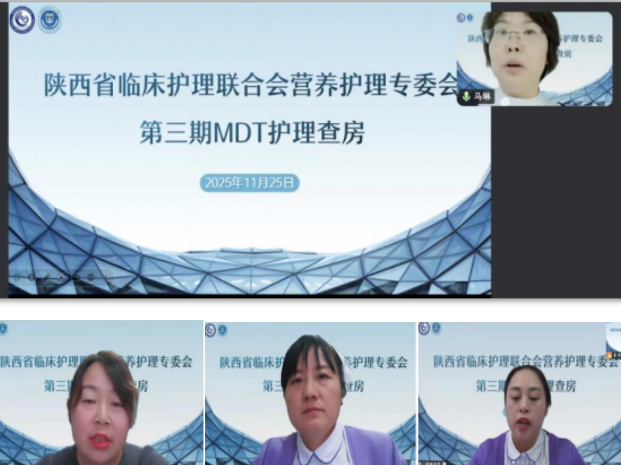 阳光讯(记者 郑亚雷)11月25日下午,由陕西省临床护理联合会营养护理专业委员会主办、西安医学院第二附属医院承办的“多学科协作(MDT)护理查房”在腾讯会议平台圆满举行。本次会议以“肿瘤全程营养管理”为核心,汇聚了专委会专家及该院营养护理专业学组成员等50余位护理人员在线参与,共同探索肿瘤患者营养支持的前沿理念与临床实践路径。