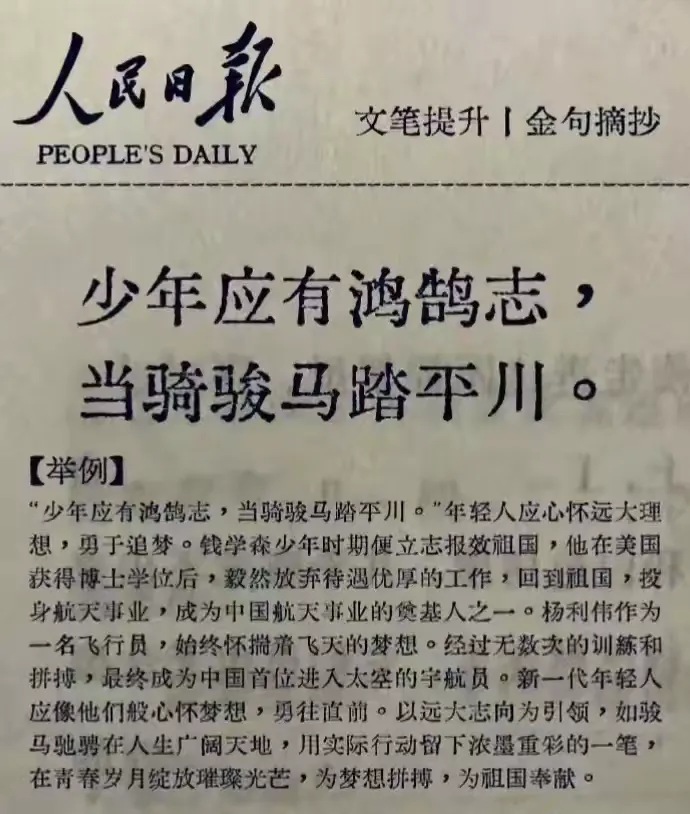 “少年应有鸿鹄志,当骑骏马踏平川”。