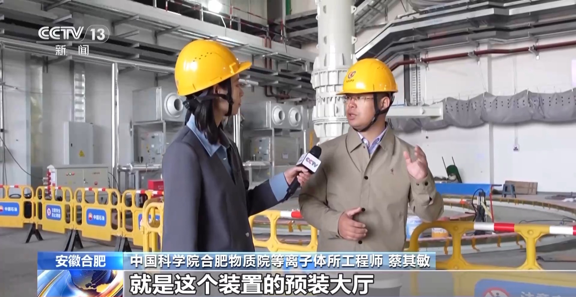 中国科学院合肥物质院等离子体所工程师 蔡其敏:在“十四五”期间,合肥科学岛的EAST(东方超环)装置上面突破了亿度千秒大关,推动核聚变研究从基础的实验领域转向了工程化的建设。我们现在所处的位置就是这个装置的预装大厅,目前我们是在紧锣密鼓地建设这个园区。