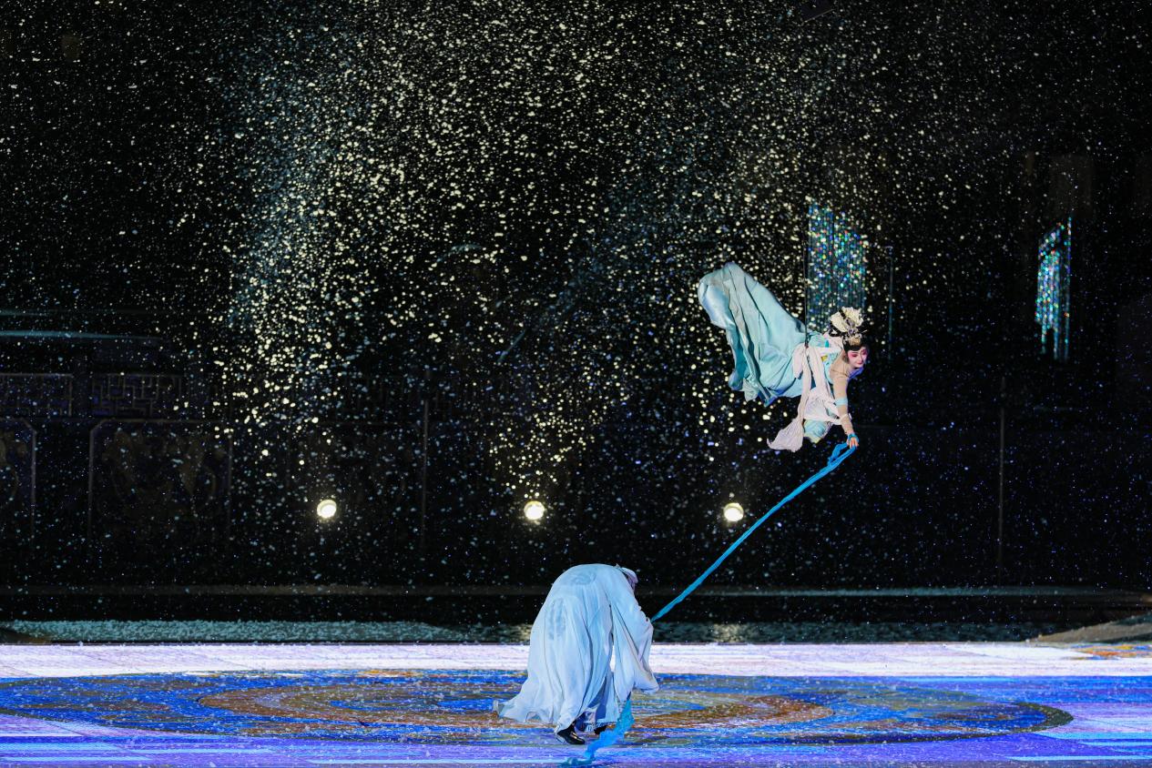 舞剧《长恨歌》艺术总监薛雷凯介绍,《长恨歌》作为华清宫的一张文化名片,更是以实景演出的形式,将唐代的恢弘史诗与情感传奇生动再现,让游客身临其境,感受盛唐的壮美与深情,冬季版冰火《长恨歌》更是实现了北方冬季实景演出零的突破。截至今年,《长恨歌》已累计演出超过6500场,接待观众近1300万人次,不仅成为陕西旅游的一张“金边名片”,也是中国文旅融合中一个不断自我刷新的典范。
