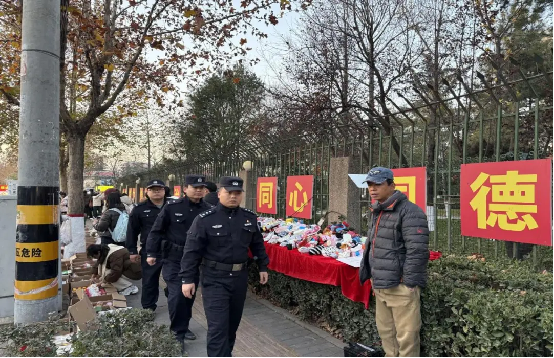 纺织城派出所深耕街面与市井,菜市场人声鼎沸时,民警已准时到岗,穿梭于摊位与人群间,维持秩序、提醒防盗、规范停车,以敏锐巡查震慑隐患,守护市井烟火安宁。随后警力无缝衔接校园周边,推行“护学岗+动态巡逻”模式。高峰过后仍以车巡+步巡高频覆盖,保持“警察常在、警车常见、警灯常亮”。从菜场的贴心提醒到校园的全程护航,民警以日复一日的坚守、重复却细致的举措,用高效警力衔接筑牢全时段平安防线。