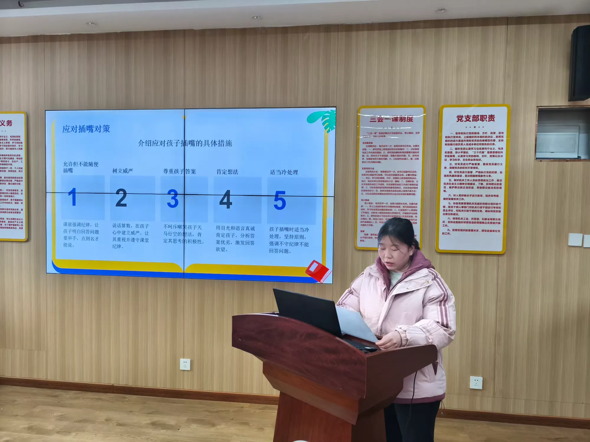 杨依蕾老师以“爱插嘴的孩子”为主题,深入探讨了如何在日常学习生活中正确有效引导学生爱插嘴的现象。杨老师向大家还分享了一系列切实可行的教育引导策略,以促进学生全面发展。