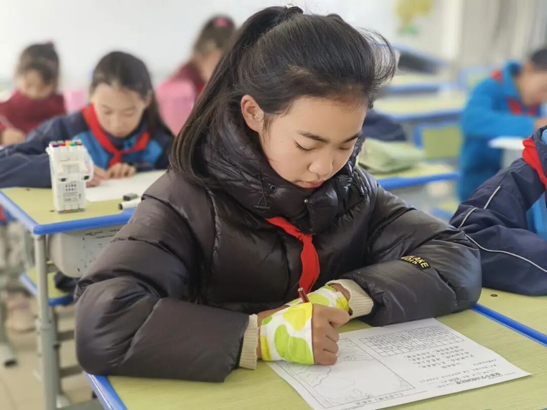 午后的教室,静谧而专注。只听见笔的沙沙声,那是灵感在纸间流淌的声音。书写、勾画、选色、涂画……每一个步骤都凝聚着孩子们对诗歌的理解与想象。