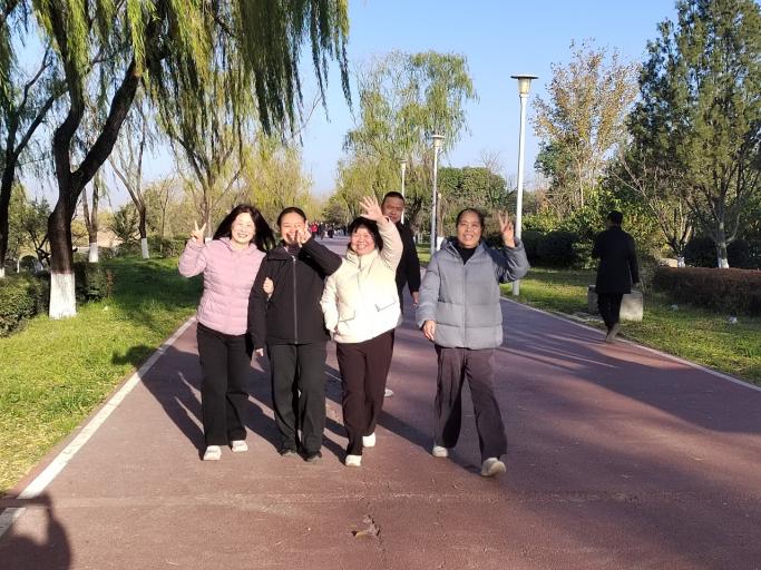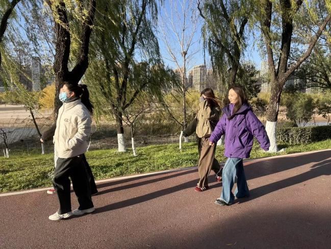教职工们沿着风光秀美的河堤步道阔步向前,冬日的河堤上满是欢声笑语与奋进身影,成为一道道独特的风景线。
