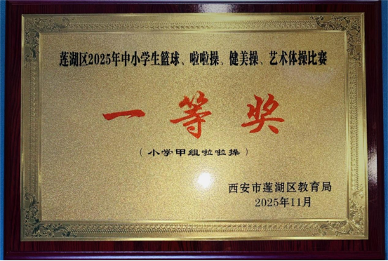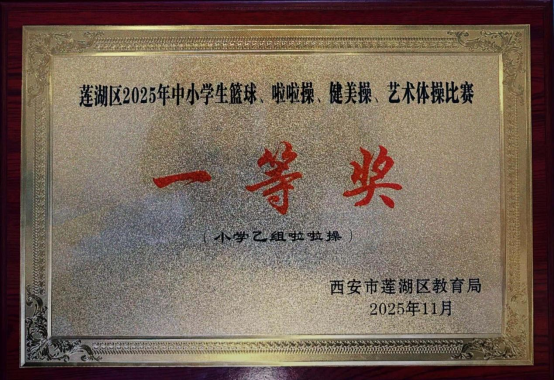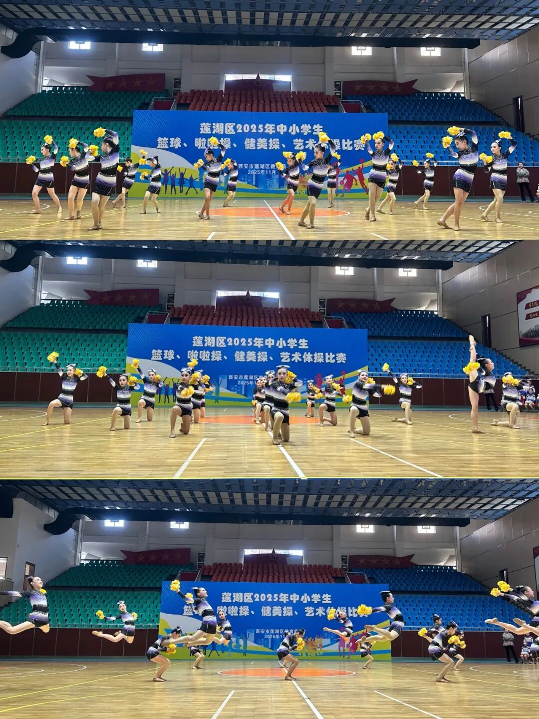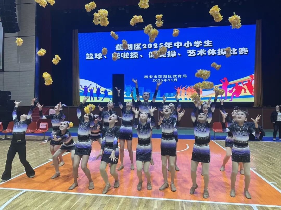 捷报传来!莲湖区2025年中小学生啦啦操比赛圆满落幕,西安市莲湖区机场小学学子凭借精湛技艺与默契协作,继2024年后再度卫冕甲组冠军,荣获:小学甲组一等奖(冠军)