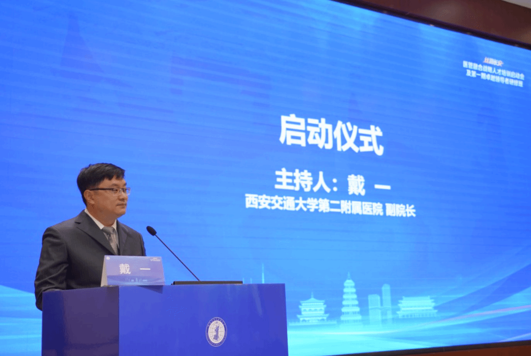 启动仪式上陕西省科技厅副厅长白崇军、陕西省医学传播学会会长李宏杰、陕西省委组织部人才一处处长钟雪斐、西安交通大学医学部常务副主任雷利利出席并致辞。启动仪式由戴一主持。