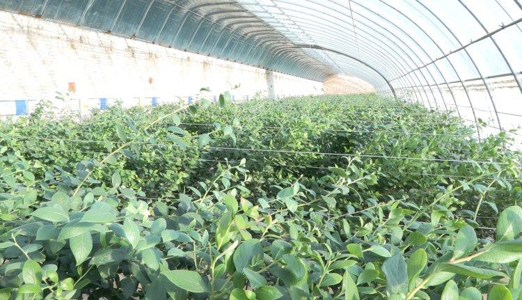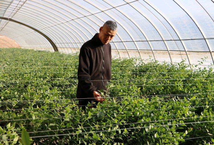在另一座大棚里,公司副总经理贺美霞正仔细查看着蓝莓的花情,脸上洋溢着对丰收的期盼。