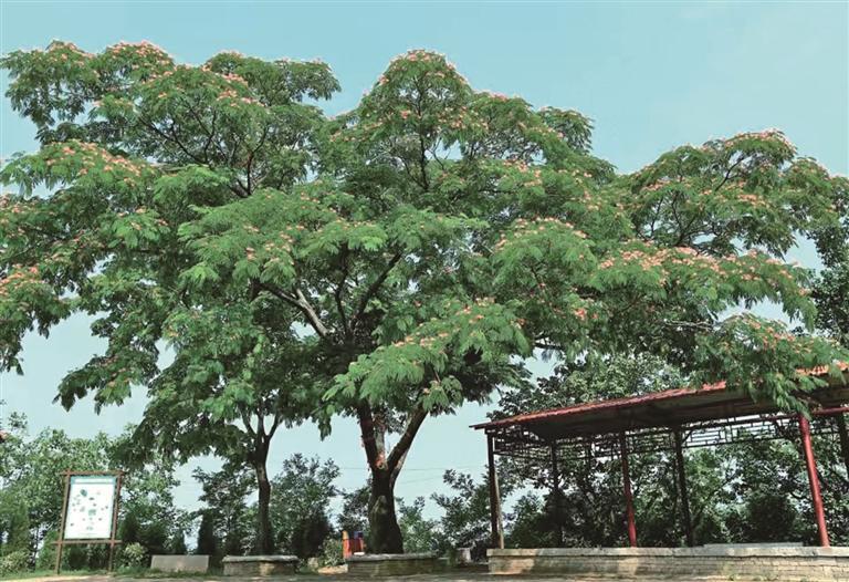 富平县金粟山上,树龄超百年的合欢树静静伫立(资料照片)。 受访单位供图