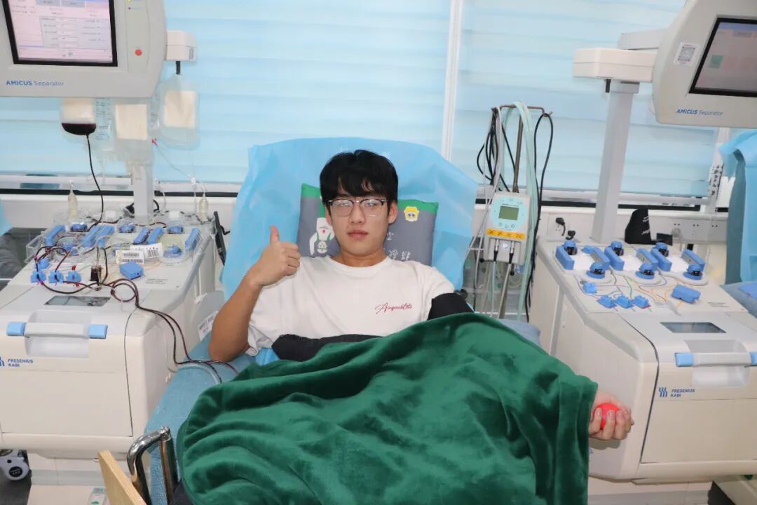 李其原来到咸阳市人民路咸阳血站机采献血屋,血站工作人员热情接待了这位零零后,给他科普了全血和机采血小板对救治生命的不同意义。李其原决定捐献两个治疗量的机采血小板,赢得血站工作人员和同学的点赞。