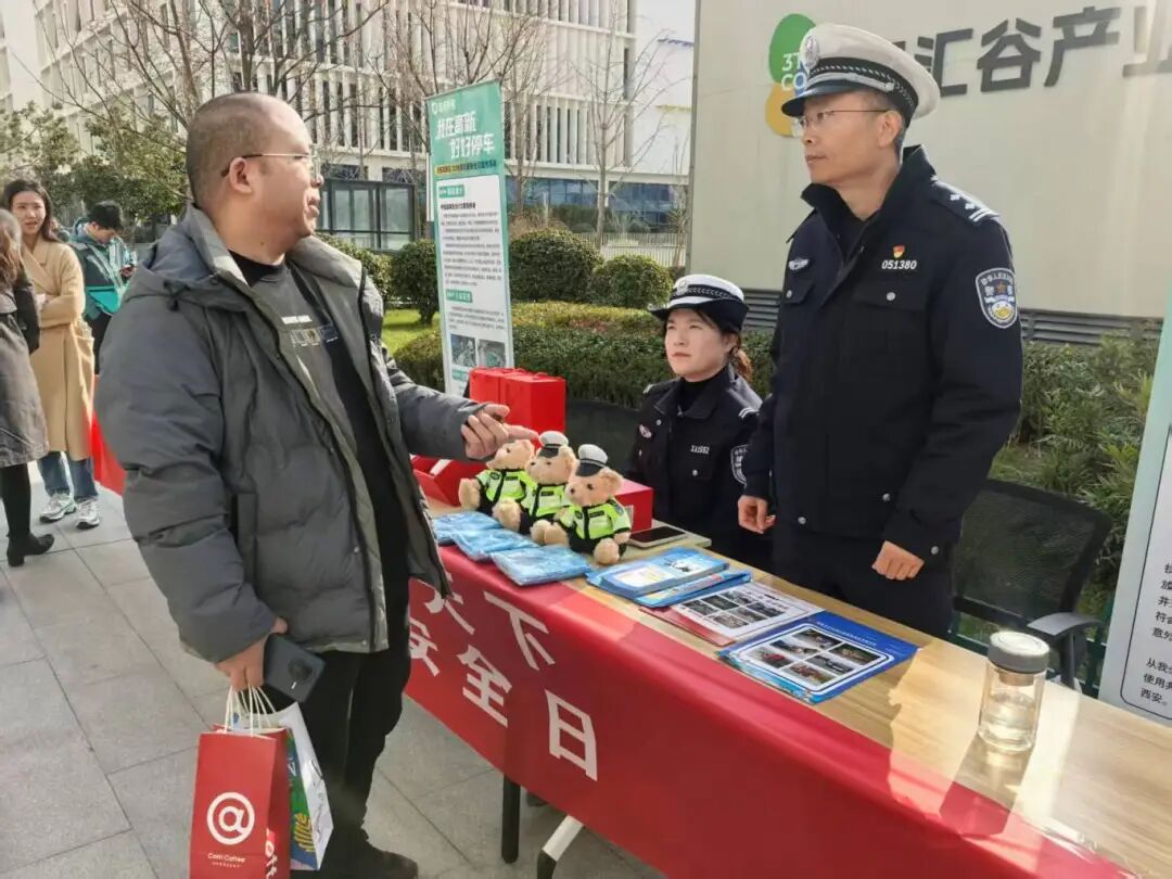 交管高新大队执勤六中队走进高新区云汇谷产业园,举办以“文明交通 礼行天下”为主题的第十四个“122”全国交通安全日宣传活动。