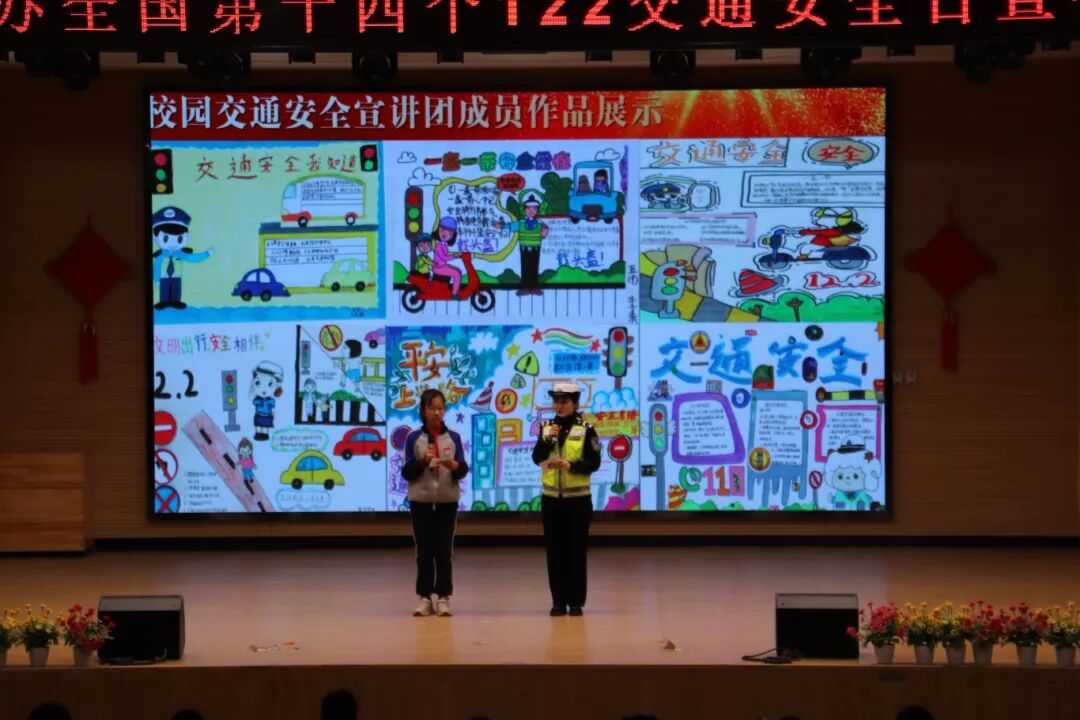 随后,校园交通安全宣讲团的成员围绕交通安全主题,精心创作并现场展示了系列主题绘画作品,用童真的视角和斑斓的色彩,生动表达了对交通规则、安全出行的理解和倡议,交警结合学生们的画作,进行了专业、生动且富有启发性的点评与延伸讲解,在互动中深化了大家对安全乘车、文明行走、识别交通标志等知识的认知,实现了教育效果与参与热情的双重提升。