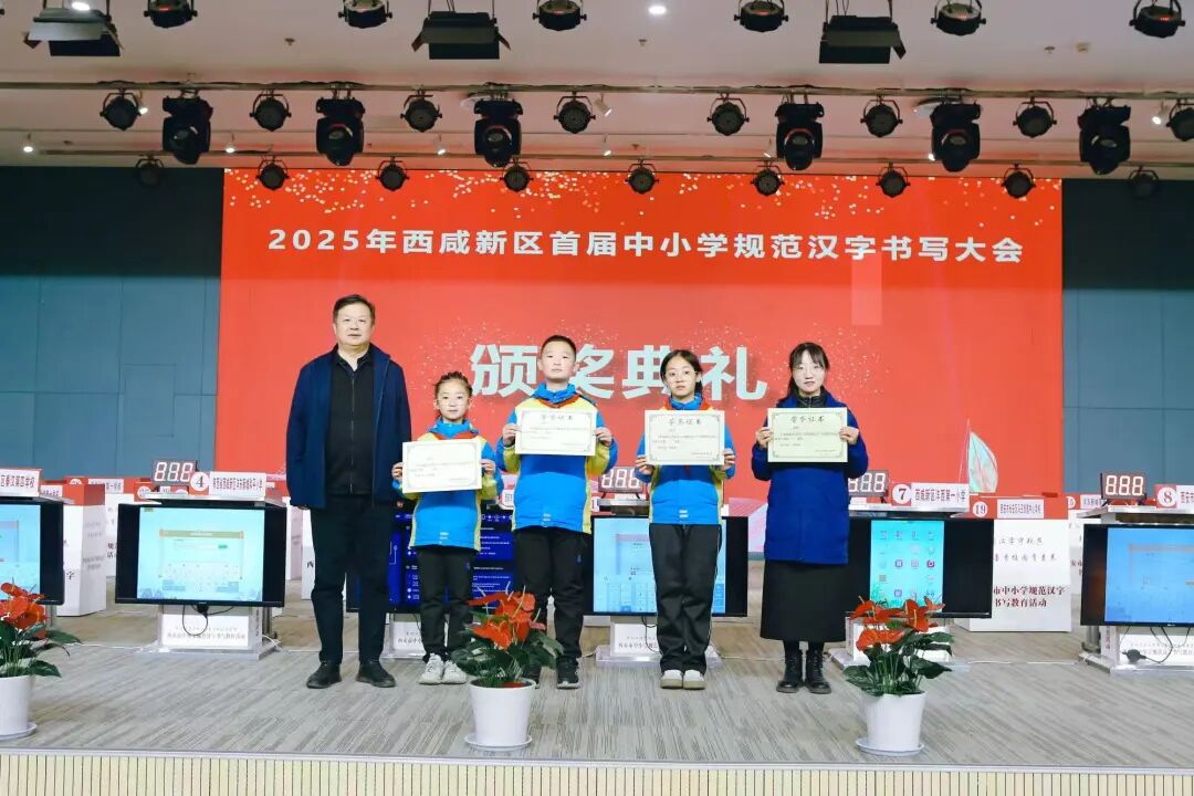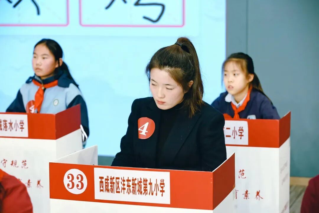 车辆小学的文梓涵、石思诺、韩奥科、吴博寒等同学与邬雯雯老师相互配合,以笔力遒劲、结构严谨的作品惊艳赛场;沣东第九小学的欧阳亦珊、仇雨晨、李雯悦、安蓦尘四位同学与刘静静老师携手,以工整秀雅、规范标准的字迹赢得评委高度认可。两校学子以笔为媒,共同书写集团汉字教育的精彩篇章!