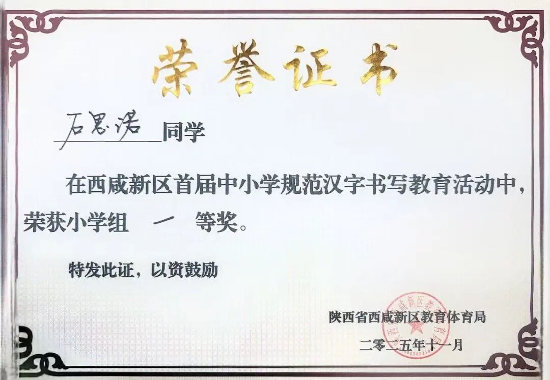 日前,车辆小学教育集团在西咸新区首届中小学规范汉字书写大赛中再创佳绩!集团成员校车辆小学勇夺小学组一等奖(第一名),沣东第九小学喜获小学组二等奖(第三名),以双优成绩彰显集团规范汉字教育的扎实底蕴!