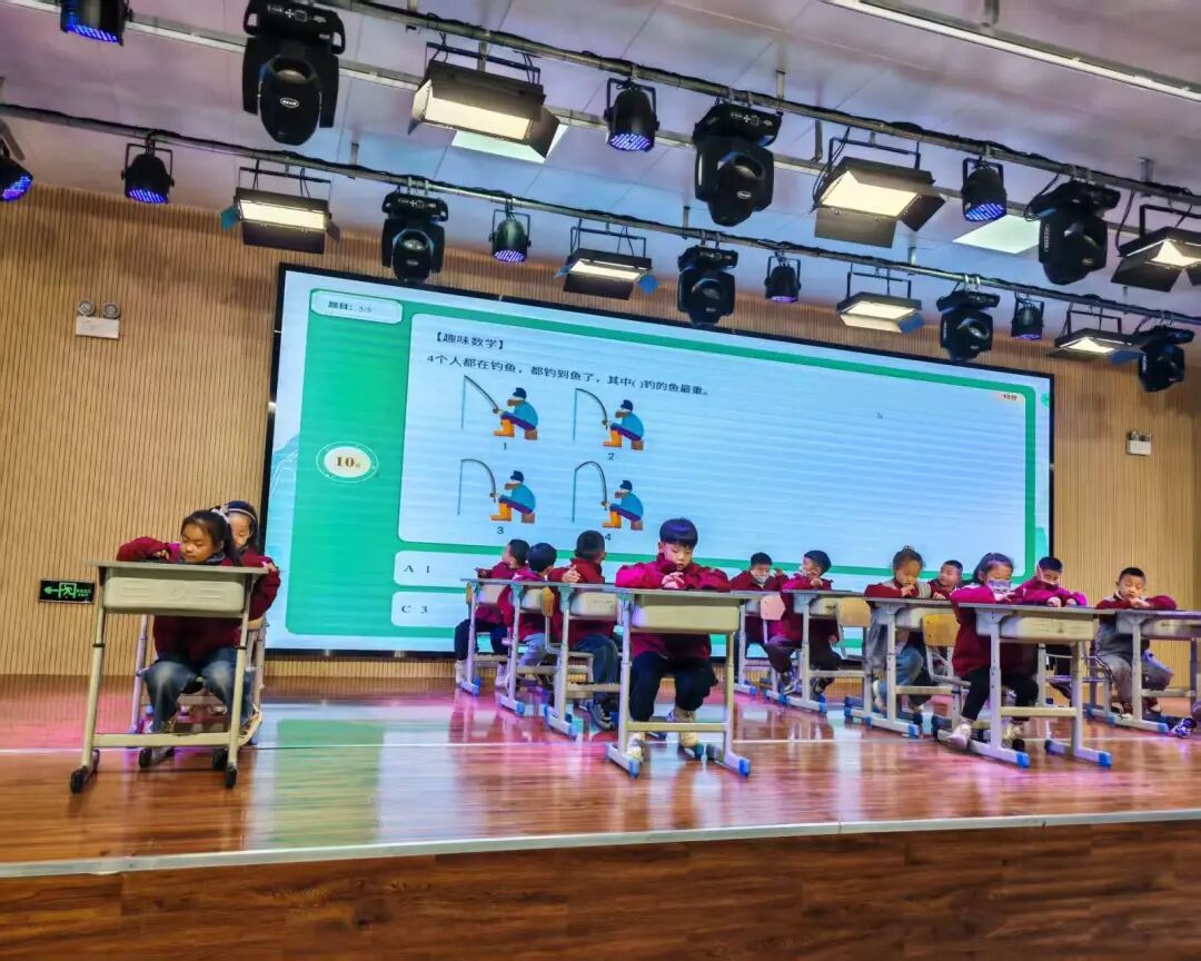 1-2年级赛场童趣盎然,基础计算赛中,小选手们在平板电脑上飞速作答,10以内加减法信手拈来。思维闯关赛环节,找规律、简单分类等题目引发热烈抢答,抢答器的清脆声响此起彼伏,选手们沉着思考、快速反应,展现了扎实的知识功底。