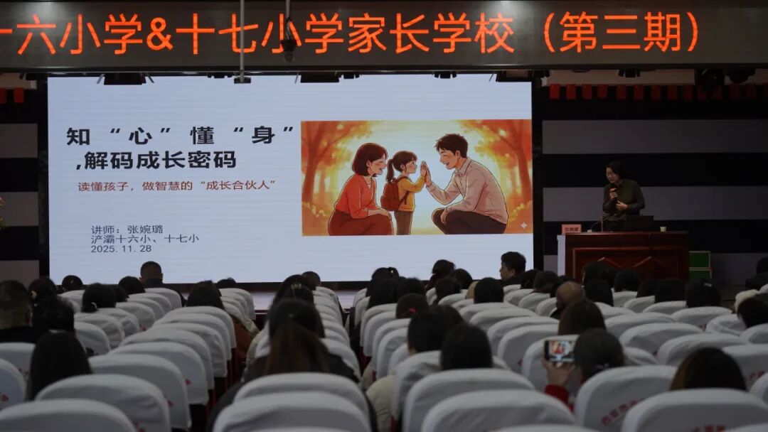 为进一步深化家校共育机制,提升家长家庭教育能力,构建和谐亲子关系,2025年11月28日下午,西安市浐灞第十六小学与第十七小学联合举办的家长学校第三期培训活动在第十六小学五楼报告厅顺利开展。