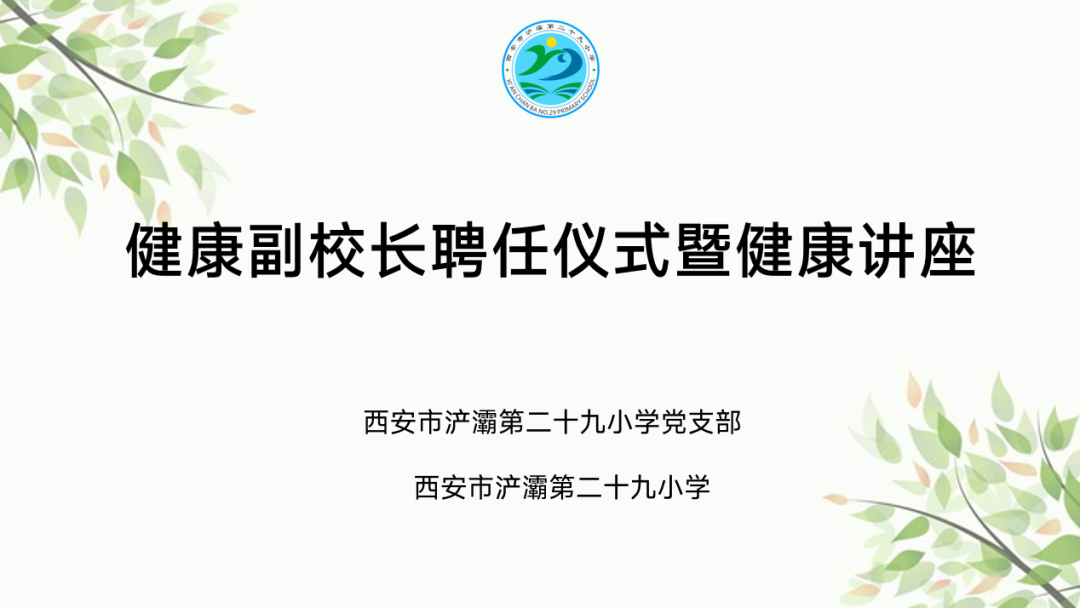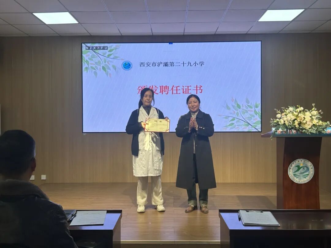 健康是成长的基石,守护是教育的责任。为贯彻落实《陕西省中小学幼儿园健康副校长聘任与管理办法》文件精神,整合医疗健康资源,强化校园卫生健康管理,提升师生健康素养,构建“学校+医疗”协同育人的健康校园体系,12月1日下午,西安市浐灞第二十九小学举行了健康副校长聘任仪式暨健康知识讲座。