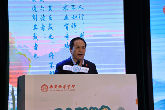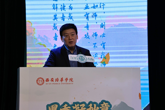 陕西省诗词学会会长刘炜评宣布最终比赛结果。他表示,本届大会不仅展现出培华学子深厚的古典诗词功底,更体现了年轻一代对中华优秀传统文化的自觉传承。他强调了诗词在当代育人中的重要作用,鼓励同学们继续在诗海中涵养心灵、提升境界,让古典智慧照进现实生活。