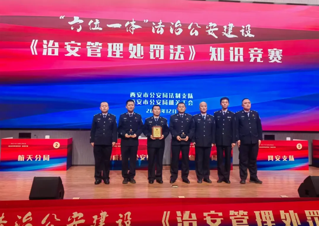 阳光讯(记者 梁萌)12月3日,在西安市公安局法制支队与机关工会联合举办的“六位一体”法治公安建设《治安管理处罚法》知识竞赛决赛中,来自全市的6支代表队展开激烈角逐。比赛中,灞桥分局代表队沉着应战、默契配合,在抢答题、风险题等多个环节表现突出,最终凭借出色的现场发挥与扎实的业务储备,斩获全市团体第一名;同时,狄寨派出所所长王选利荣获全市个人第一名,法制大队民警张磊获个人第三名,豆胜利获个人第九名。