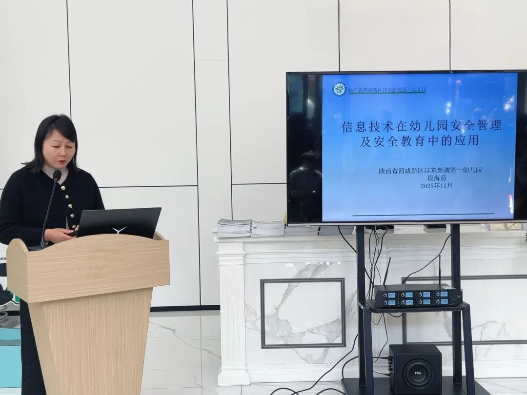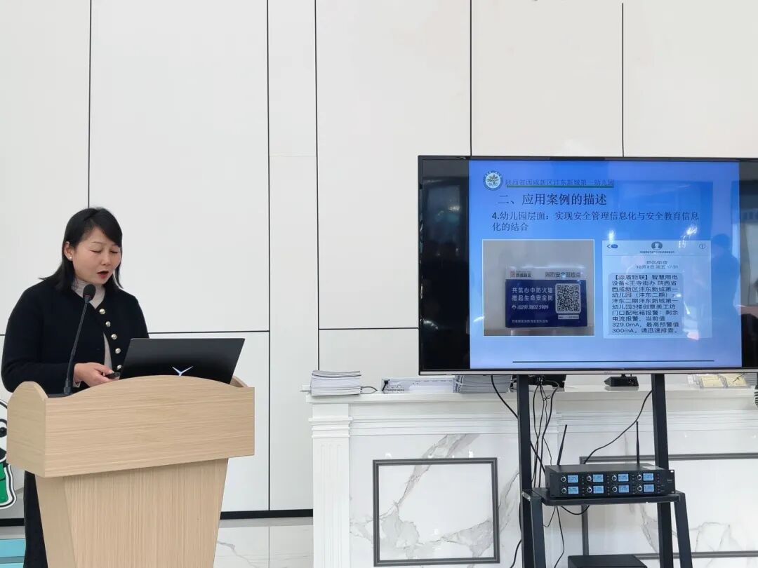 会上,作为陕西省代表,西咸新区沣东新城第一幼儿园段海茹园长作了《信息技术在幼儿园安全管理和安全教育中的应用》经验分享,就本园依托信息技术进行安全数据管理、安全宣传教育、安全技术监管的创新实践,从基本情况、应用案例描述二个维度进行了经验介绍与分享。