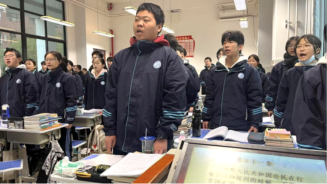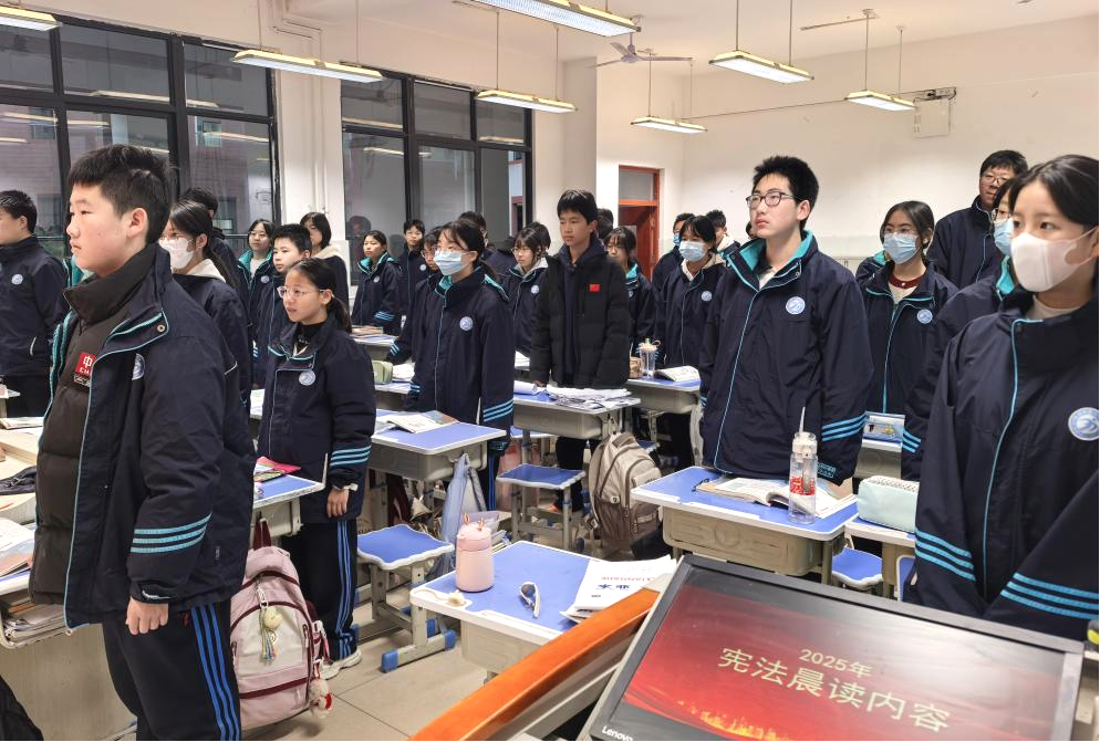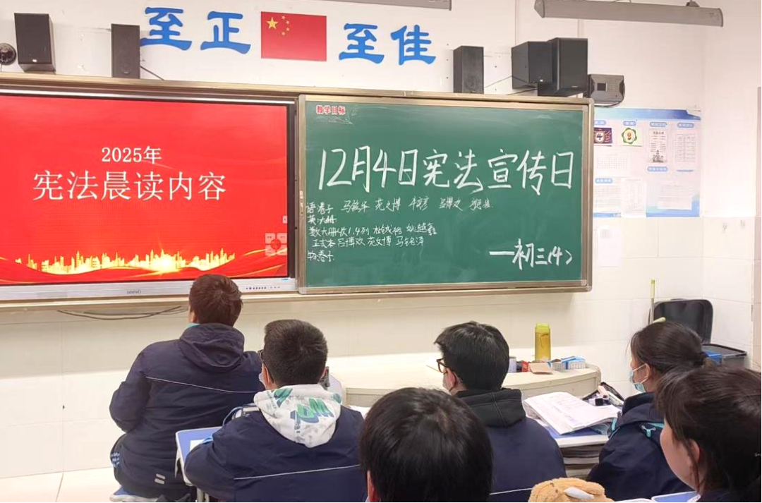 12月4日国家宪法日当天,全校各班组织了宪法晨读活动。清晨的校园里,回荡着学生们朗朗的诵读声,宪法条文在晨光中焕发新的生命力。