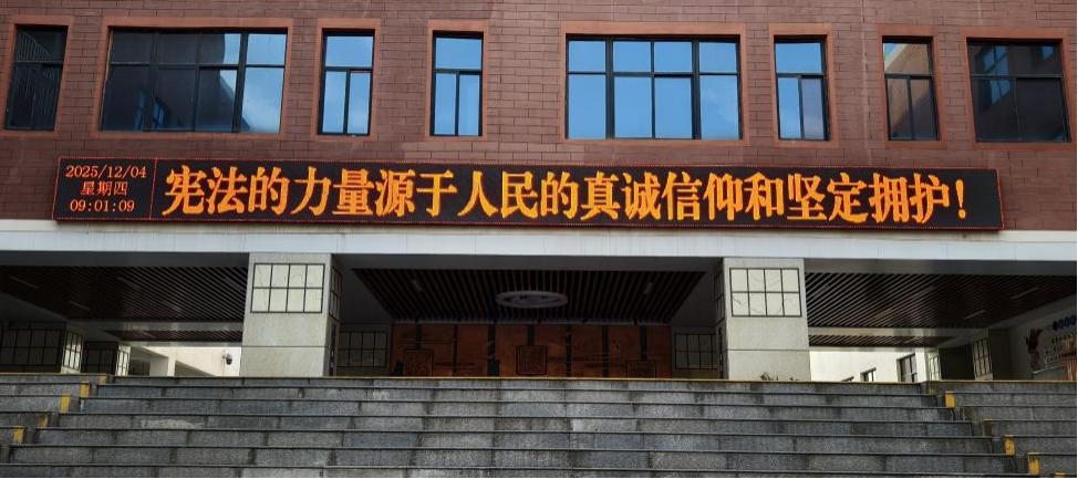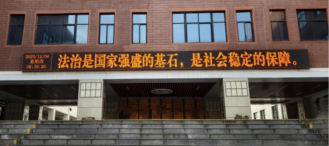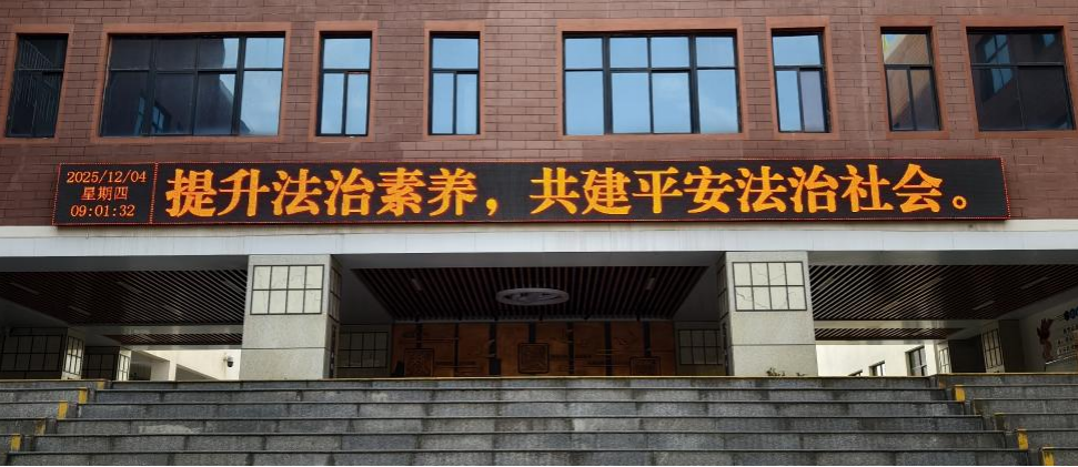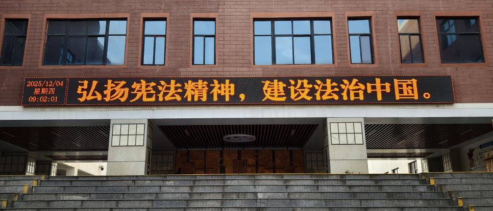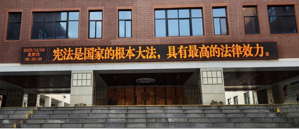 与此同时,学校电子屏滚动播放着“宪法是国家的根本法”“弘扬宪法精神,建设法治中国”等宣传标语,营造了浓厚的宪法学习氛围。