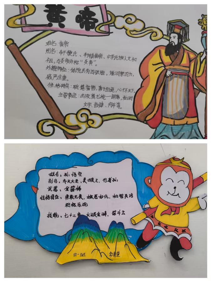 神话世界奇幻瑰丽,英雄人物深入人心!四年级的同学们为喜爱的神话人物制作专属“身份证”:姓名、出处、性格特点、经典事迹、标志性法宝…… 一张小小的人物卡片,浓缩神话精华。