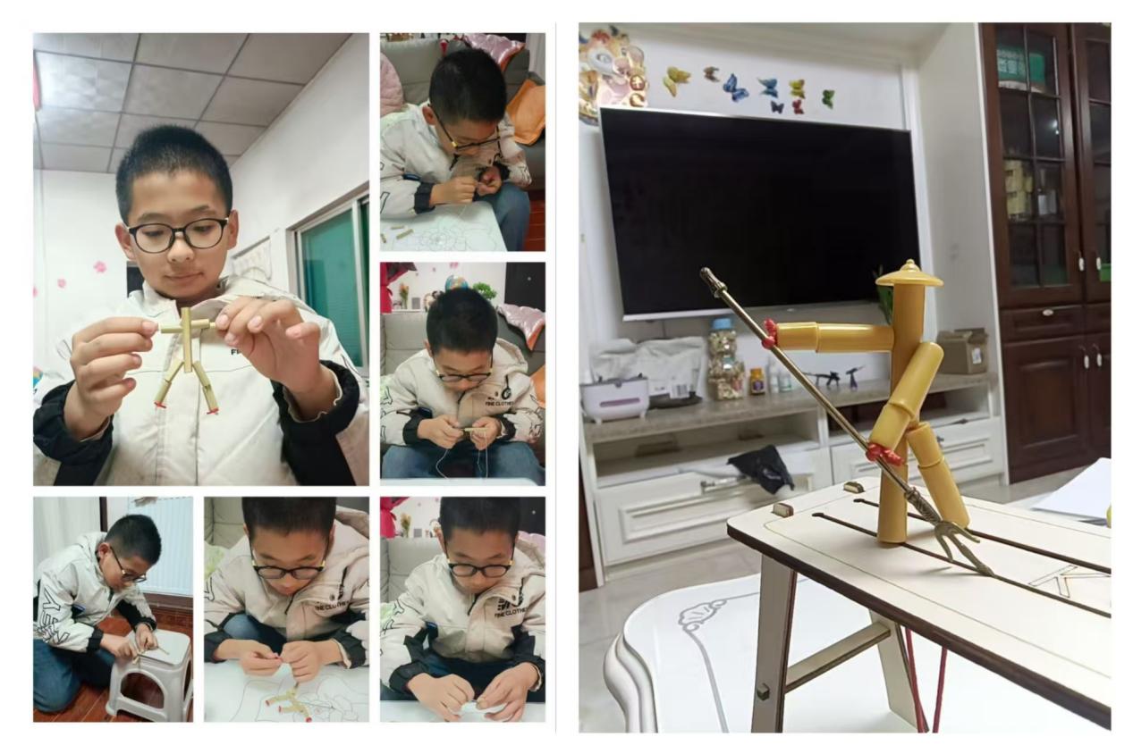 动手实践乐翻天,传统玩具焕新彩!六年级的同学们挑战手工制作竹节人,一根根竹条、一段段棉线,在指尖翻飞组合,变成一个个灵活可爱的竹节人。大家不仅体验了动手创作的乐趣,还细心记录下制作全过程的精彩瞬间,用照片定格创意与汗水,让传统玩具成为童年最珍贵的回忆。
