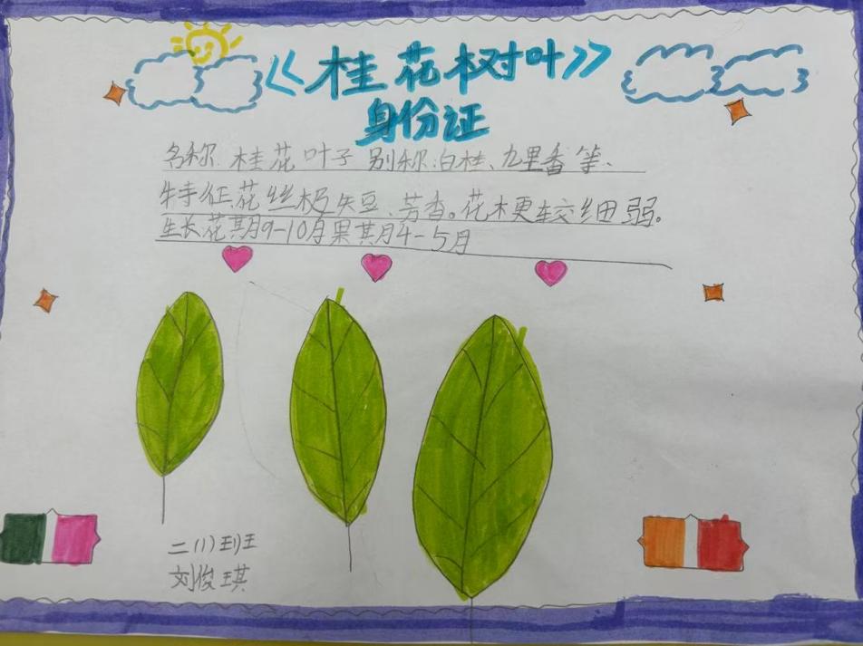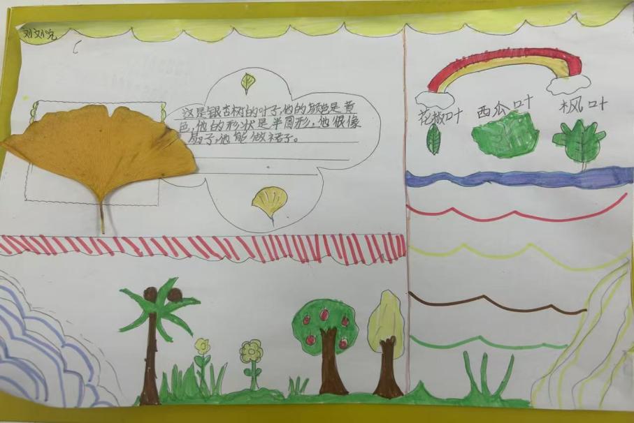 二年级同学化身自然观察者,弯腰捡拾一片冬日落叶,细致端详它的颜色、形状与纹理。随后,他们在纸上精心描绘落叶模样,写下“姓名”(树叶种类)、“外貌特征”等信息,再用话语描述落叶的冬日故事,一张张独特的树叶“身份证”,满是对自然的热爱。