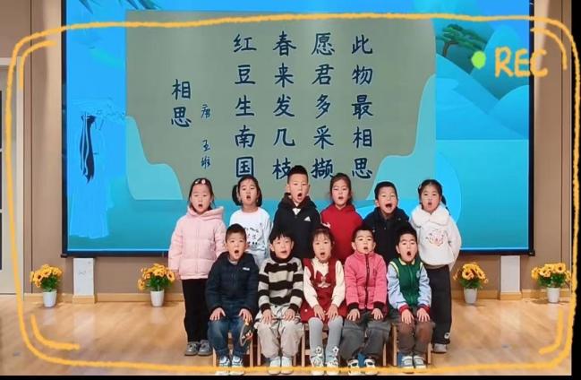 中班的金宝们沉浸式开启古诗诵读活动!稚嫩声线吟诵千古佳句,在一字一顿的品读中校准汉字发音,感受声调韵律,让千年诗词的墨香缓缓浸润幼小心灵。