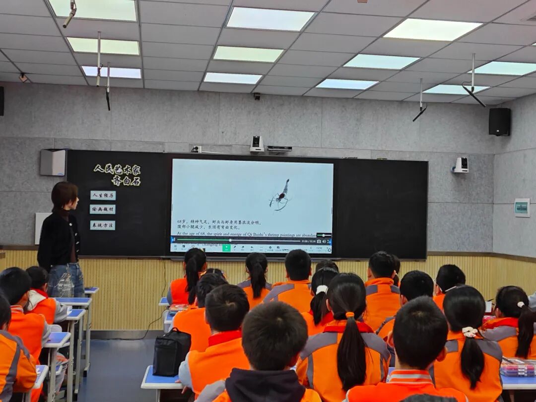 马媛媛老师在《人民艺术家齐白石》的课堂上,以齐白石先生的艺术人生为主线,用生动的故事串联起大师的创作历程,从虾蟹的灵动笔触到果蔬的质朴韵味,将“笔墨丹青”的魅力娓娓道来。整堂课节奏紧凑、趣味盎然,既传递了美术知识,更播下了传承优秀传统文化的种子,充分展现了“双责智慧课堂”中教师扎实的教学功底与独特的美育视角。