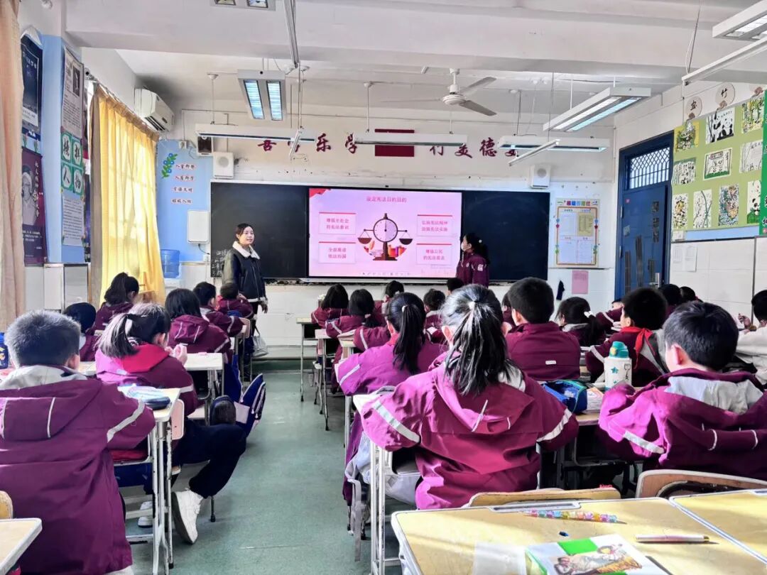 各班级开展形式多样的“宪法伴我行”主题班队会活动,让法治学习“活”起来、“实”起来。老师们通过案例解析、互动问答等方式,引导学生学会运用法律武器保护自身合法权益,将法治意识转化为自觉行动。