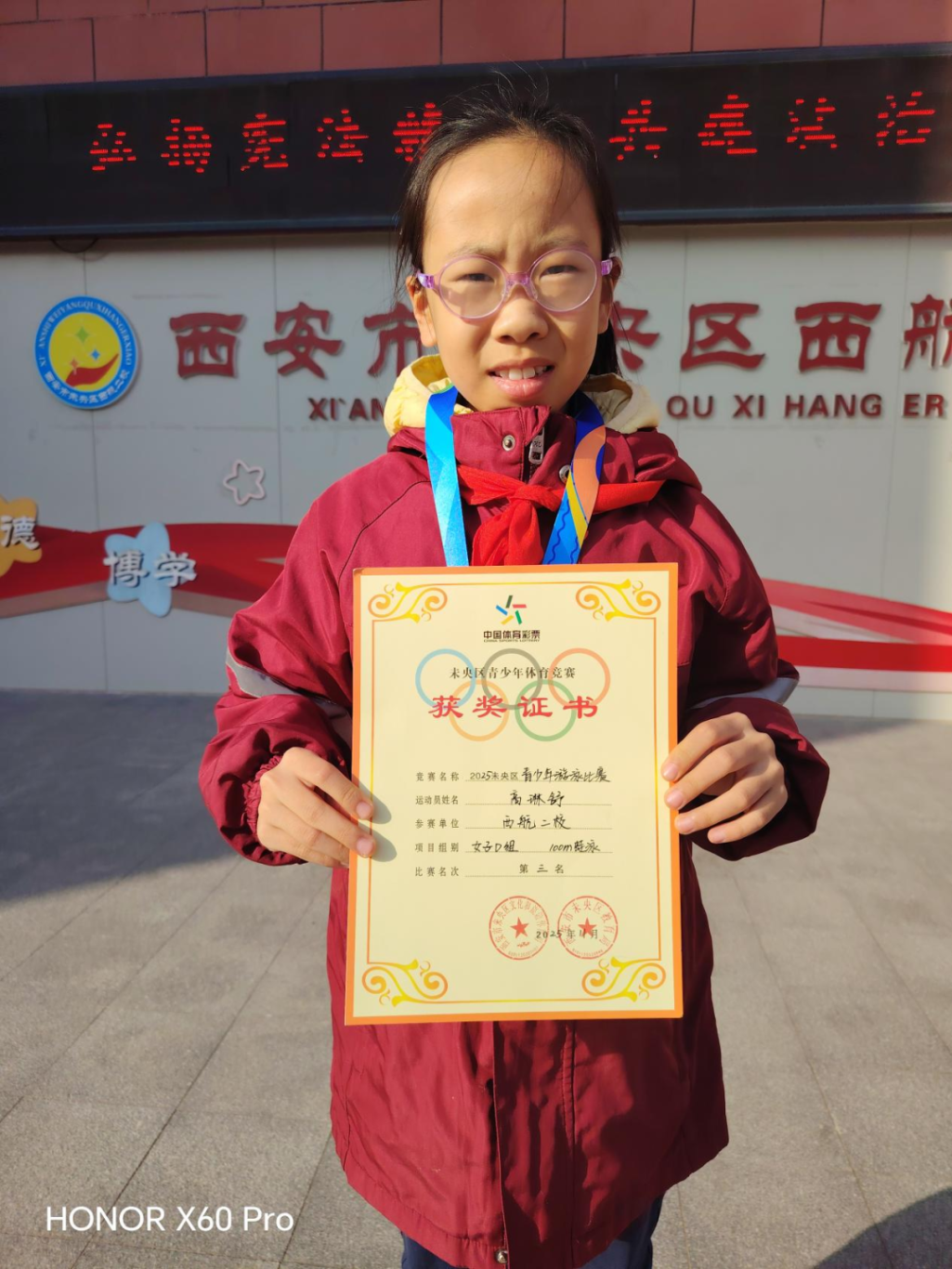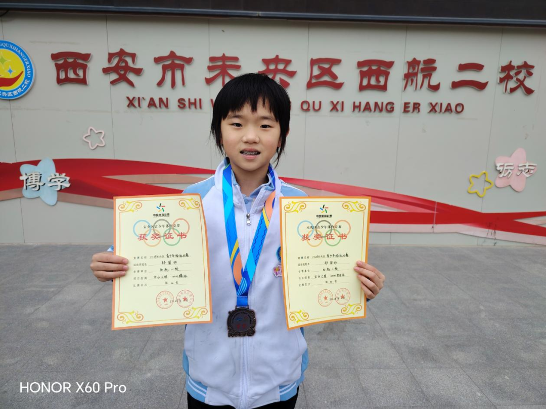 日前,西安市未央区西航二校的郑诺伊同学在2025年未央区青少年游泳比赛中,凭借卓越的竞技水平和坚韧不拔的拼搏精神,勇夺女子E组50米仰泳和50米蝶泳的双项冠军;高琳舒同学则在女子D组100米蛙泳中斩获第三名;郑圆妙同学则在女子C组100米蝶泳中荣获第三名,并在100米自由泳中取得第四名,为西安市未央区西航二校增添了光彩!同时,学校在此次比赛中荣获团体总分第八名!