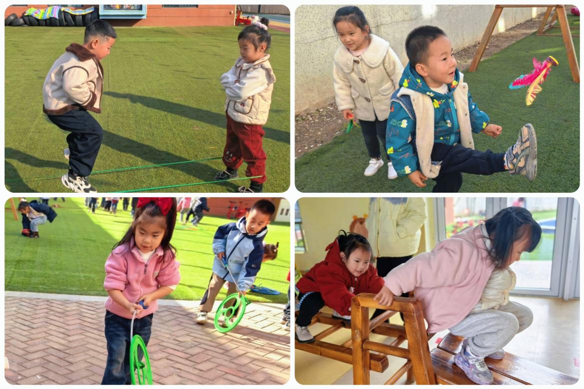 面对冬日寒意,老师还引导孩子们做好自我防护,穿戴整齐保暖衣物后,在户外尽情参与踢毽子、滚铁环等趣味运动;日常活动中还牢记“多喝水、不挑食”的健康口诀,在快乐体验中养成科学的冬季防护习惯。