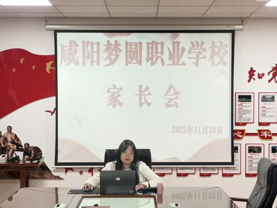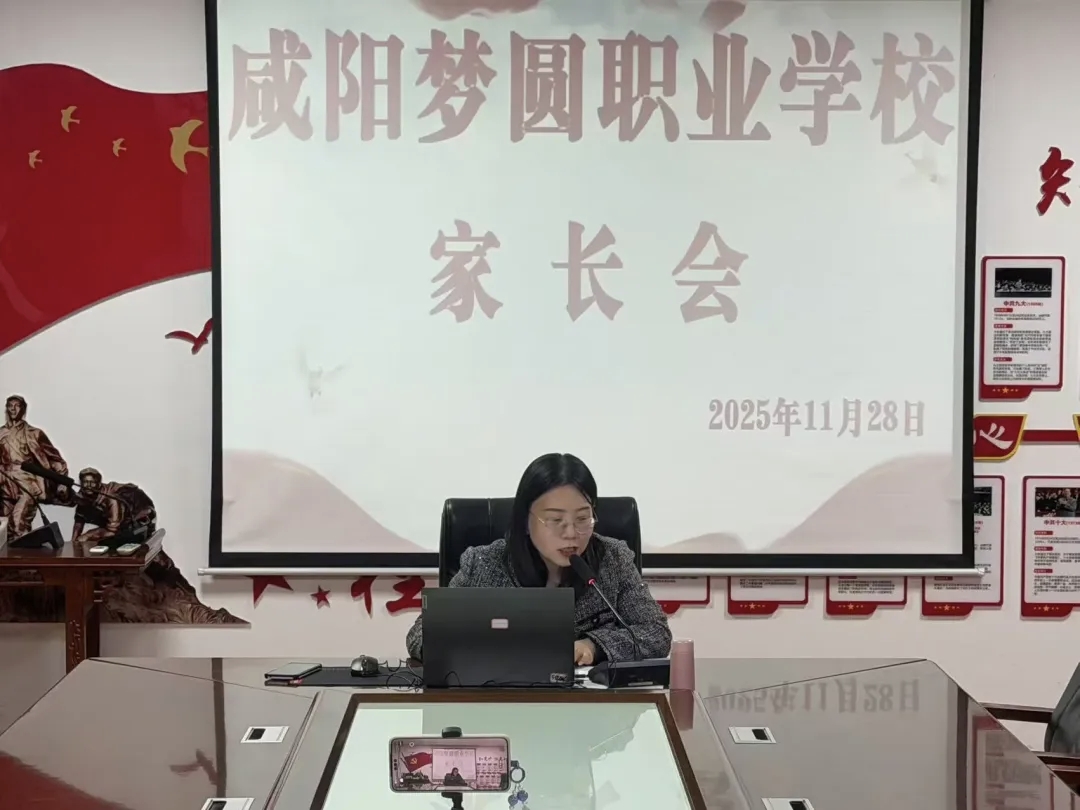 家校携手同赴成长之约为了让家长更全面地了解孩子的校园生活,凝聚教育合力,咸阳梦圆职业学校于2025年11月28日,召开了家长会。大会现场本次家长会由咸阳梦圆职业学校务常委会常委、常务副校长冯艳丽同志主持。