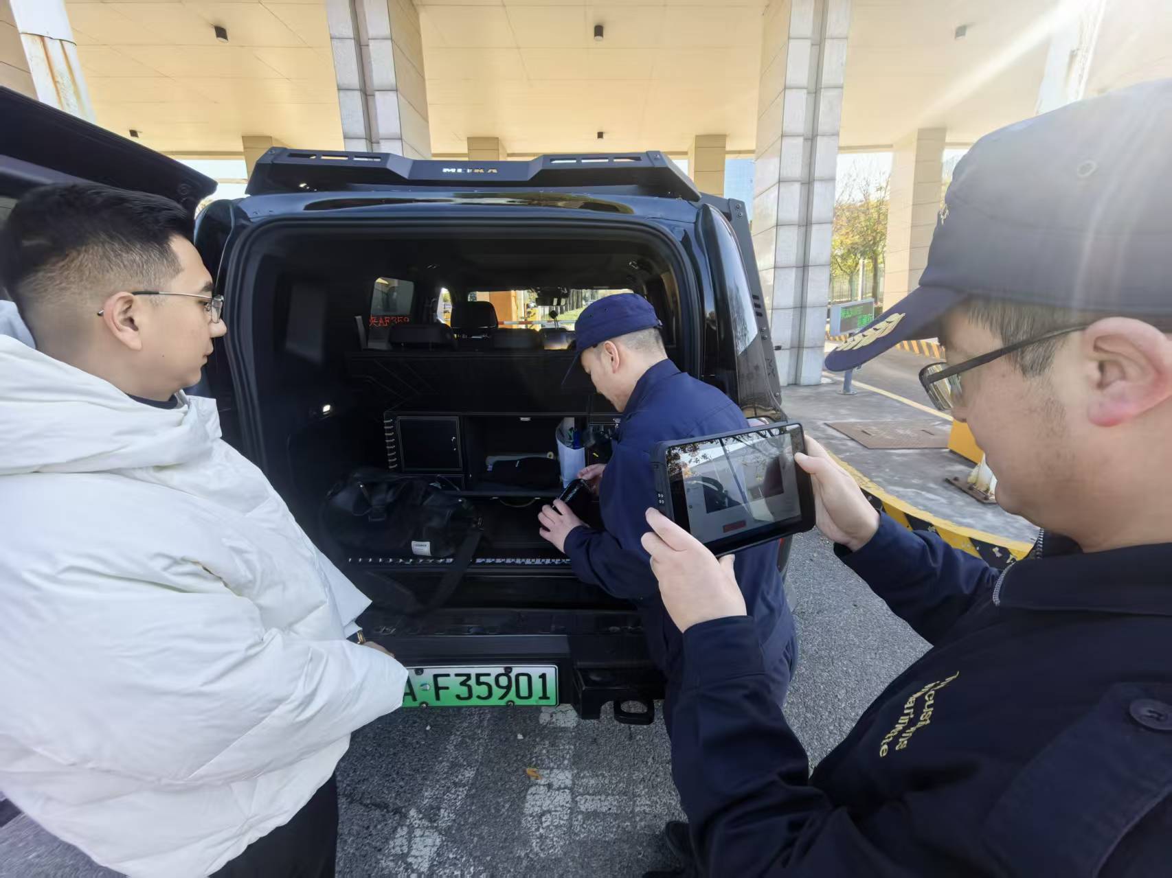 “智能化系统让我们的工作更高效、更规范。”高新综保区协管队队长寇恒手持PDA、佩戴执法记录仪,与协管队员高党伟配合作业,熟练地完成了一次常规检查。他指着胸前的执法记录仪介绍:“以前查验全靠经验,记录全靠纸笔,遇到不配合的车主很难取证。现在接到检查指令后,PDA和执法记录仪自动启动,检查流程、照片视频、谈话音频实时上传,全程可追溯,这种全程自动化的作业模式,既是对我们工作负担的减轻,也是对我们面对被检查对象时的一层保护。”