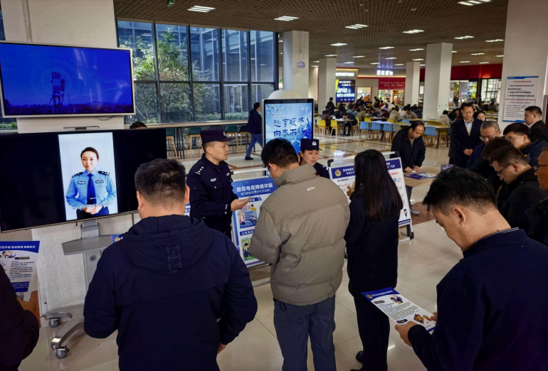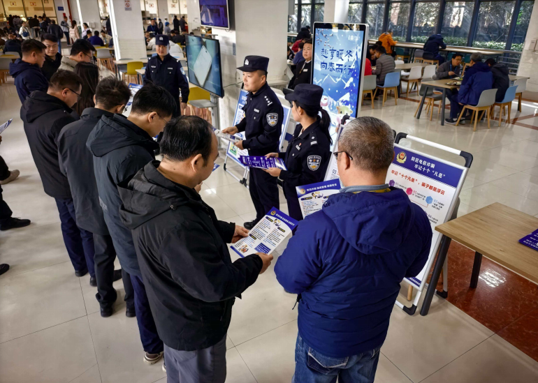 近日,西安中兴通讯员工食堂内人声鼎沸,与往常不同的是,这里多了一抹亮眼的“警察蓝”。西安市公安局高新分局东大派出所社区民警联合企业工作人员,将反诈宣传阵地搬进员工饭堂,借助午餐时段人员密集的有利契机,开展“警企共治,全民反诈”主题宣传活动,把实用的反诈知识送到员工身边。